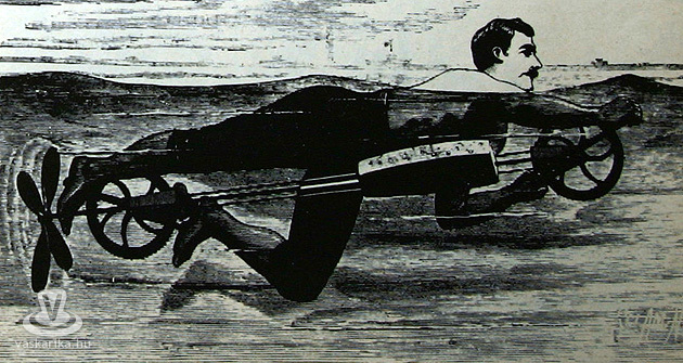 Természetesen nem lett nagy divat e találmány, s még jó ideig későbbi változatai sem. A nem elterjedt, furcsa használati tárgyak sora szinte végeláthatatlan, több könyv is megjelent róluk - ilyen például Leonard de Vries „Furcsa találmányok" című kötete. Ebben a könyvben rengeteg közlekedési eszköz illusztrációi láthatók, melyek sem levegőben, sem vízen, de még a szárazföldön sem állták meg a helyüket. Tudták önök, hogy az 1880-as években volt olyan szerkezet, hogy „úszókészülék"? Az illusztrációt látva kisebb erőkifejtésnek tűnne úszni megtanulni...