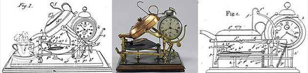 Ian Harrison „Találmányok könyve" című művéből megismerhetjük például az automata teafőző történetét, amely inkább tűnik mai szemmel nézve közveszélyes időzített bombának, mintsem a reggeljeinket megédesítő konyhai eszköznek. Frank Clarke angol úriember elméjéből pattant ki ama fantasztikus ötlet, hogy egy ébresztőórát összehozzon egy vízforralóval avagy teafőzővel, ami még pohárba is tölti az angol nemzeti italt. (Innét már csak egy lépés lett volna a távirányíthatós zsúrkocsi, kár volt megtorpanni.)
