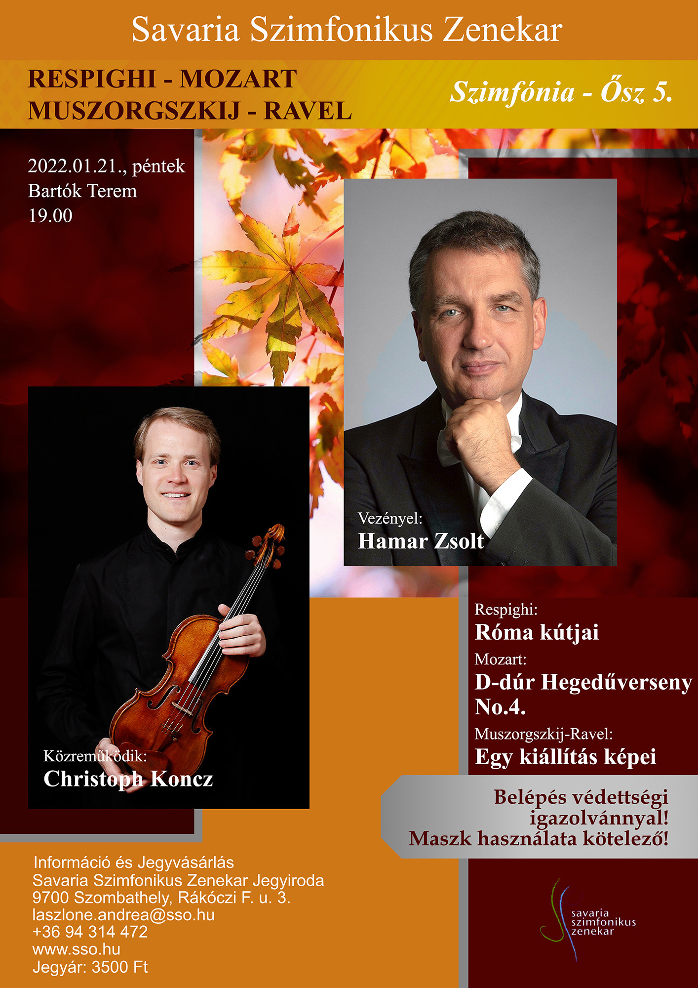 A vörös hegedű című Oscar-díjas filmben megismert osztrák csodagyerek, Christoph Koncz lép fel a Bartók Teremben - Január 21-én különleges estre várják a közönséget: a Respighi, Mozart és Muszorgszkij-Ravel műveiből álló hangversenyen Hamar Zsolt vezényli a Savaria Szimfonikus Zenekart a Szimfónia-Ősz bérlet 5. előadásán.