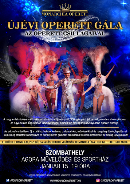 Idén megújul a MONARCHIA OPERETT produkciója, több száz látványos jelmezzel, kitűnő énekhangokkal, élő zenekarral érkezik január 15-én Szombathelyre a társulat. A pörgős, lendületes gálán a többi között a Csárdáskirálynő, a Marica grófnő, A víg özvegy és a Mágnás Miska dallamai is felcsendülnek szombaton 19 órától. Jegyek korlátozott számban még kaphatók.