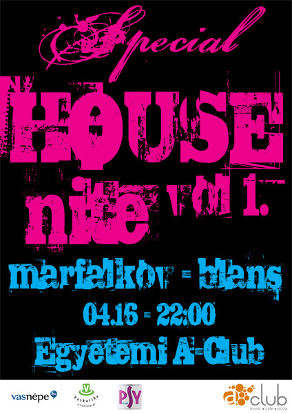 Mint az a címből nyilvánvaló, a menü a house zenékről fog szólni ezen az éjen. Marfalkov aka Yoc a mélységi indíttatású négynegyedek híve, tolmácsolója, és nem utolsó sorban alkotója is. Pár éve összerakott, és azóta sem megjelentetett albuma nagy durranás lehetett volna, mint ahogy reméljük az ez esti set-je is az lesz. Blans a kicsit könnyedebb, befogadhatóbb vonalon kalandozik, és hajlamos szettjét szép leányok kérései miatt akár megbontani is. Pénteken tehát ház a házban!