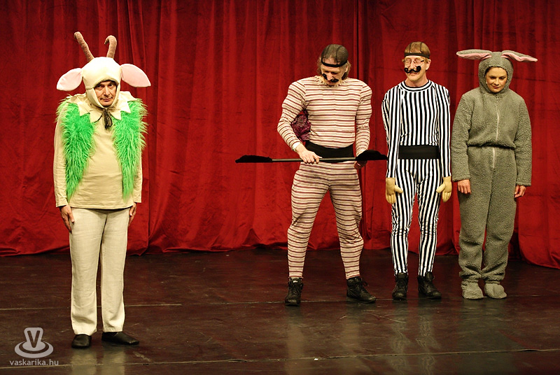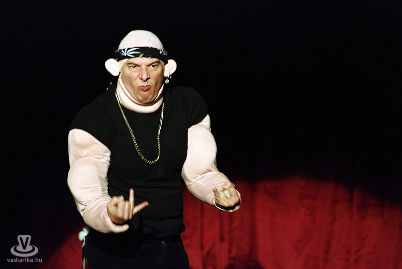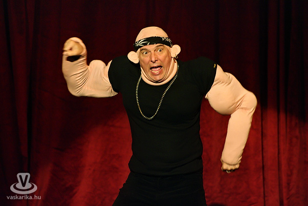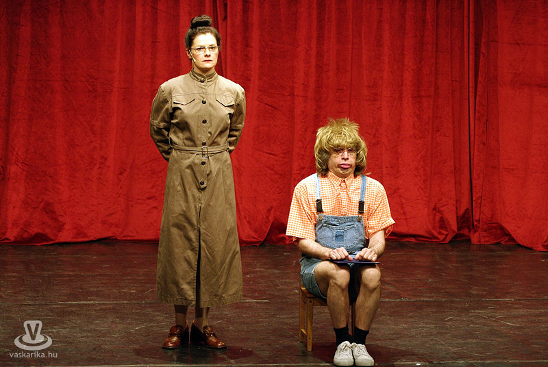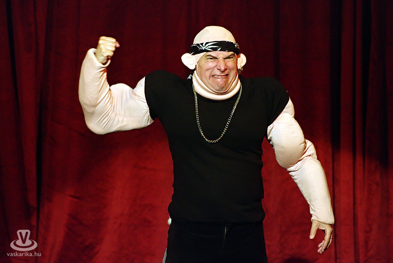 Ez a párbeszéd hangzott el az előadás végén, és nem ők voltak az egyetlenek, akik nem számolták hozzá a röhögést. De miért vicces egy széken csücsülő kisgyerek mellett a szigorú, pedáns szülő? Miért nevetünk a popsiriszáló énekesen, az ízléstelen küllemű rockeren, a tétova nagypapán, a füllentős Boborjánon, vagy a bácsin, akinek a mondandójából épp csak azt nem érteni, amit mond, vagy épp Margiton és Pityun? Azért, mert ilyenek vagyunk mi, ilyen az életünk, ilyen ez a világ, ezeket látjuk magunk körül. Bárhova megyünk, bárkivel találkozunk, biztos, hogy nem egyszer botlunk bele hasonló helyzetekbe, vagy ugyanolyan emberekbe, mint akikről Laár Andrásék az ihleteiket merítették, és görbe tükröt tartottak jellegzetes arcuk elé. Egy kicsit görbe, de azért tükör az a tükör. Há' nem? Há' de!