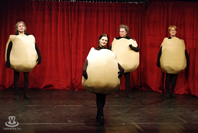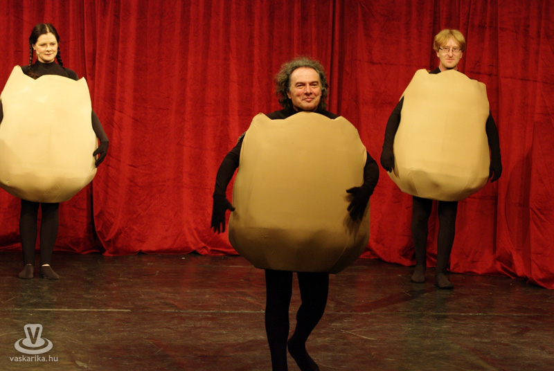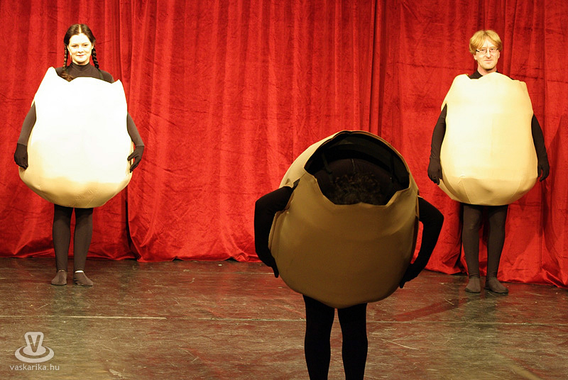 Most 2010-et írunk, és a cikk szerzője - valamelyest - felnőtt, a '98-tól változatlan felállásban sziporkázó társulat - pár tagcserét és néhány végtagcserét követően - pedig igazán véletlenszerűen pont oda ment április 12-én este, ahova „a illető", aki én vagyok. Indulás után első felindulásból az MMIK-ban futottunk össze Laár Andrással, Dolák-Saly Róberttel, Szászi Mónival és Pethő Zsolttal, és a csapat elmesélte nekünk, hogy: „Anyám tyúk, avagy az ember tragédia!"