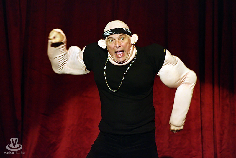 Emlékszem, még ennél is gyerekebb koromban, amikor még azok az idők jártak, hogy szilveszter éjszakáját otthon, a tévé előtt ülve és gyerekpezsgőt kortyolgatva töltöttük, a műsor legjobban várt része a Besenyő család, Boborján és a Salvador Dali-klón Leopold porondmester volt. Ahányszor látom őket, mindig ezek a szilveszterek jutnak az eszembe, és édes-nevetős nosztalgiával mosolygok magam elé. Ezen az estén kaptunk jó sokat belőlük is. Leopold porondmester a már klasszikussá vált „félremagyarázós" technikát alkalmazva - raccsoló a hangja biztosan ott cseng mindenki fülében - mutatott be pár képet, amik eredetileg biztosan nem arról szóltak, hogy a képen szereplő öt gyerkőcnek vajon hány ujja nincsen, esetleg a fulladozó kisfiú csak úgy mellesleg tök nyugodtan megfullad, míg a nagypapája békésen érdeklődik, hogy hol vannak a többiek. Egyébként is, teljesen biztos az, hogy Robinson a szigeten ennyit kérdezett: „Ezzel a fejjel még hány évet érdemes élni?" De fel sem tudtuk dolgozni a sokkot, mert Boborjánt (aki Pandacsöki) megette egy cápa (aki hülye). Emésztett minket a gondolat, őt pedig a cápa, és csípte a cicijét a gyomorsav, de ez a tény nem zavarta annyira, hogy ne tudta volna egyenként bemutatni mind a 19 ikertestvérét. Tehát a jó sok B-betűst (Balázst, Bendegúzt, Boldizsárt...), Szvatoplukot, valamit Puskást, Hidegkutit, a hét törpét, és nem töhötöm meg, hogy a hét vezért ne említsem.