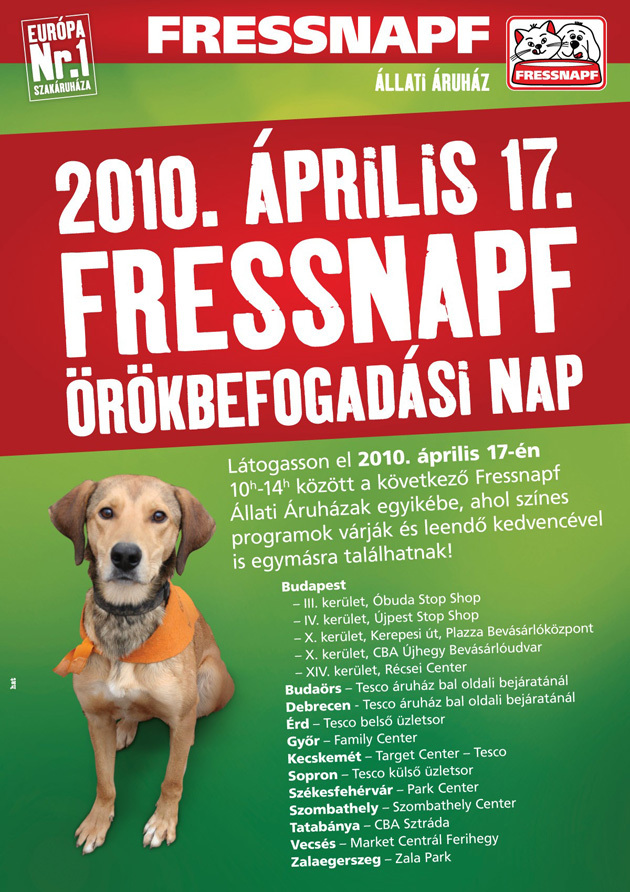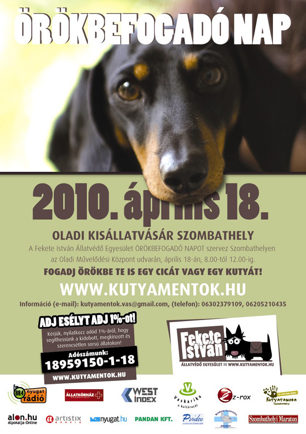 Április 17-én 10.00-14.00 óráig a Fressnapf Áruházban Szombathelyen és április 18-án 8.00-13.00 óráig az Oladi ÁMK-ban a Kisállat Vásáron várnak gazdira kölyök és felnőtt cicák és kutyák.