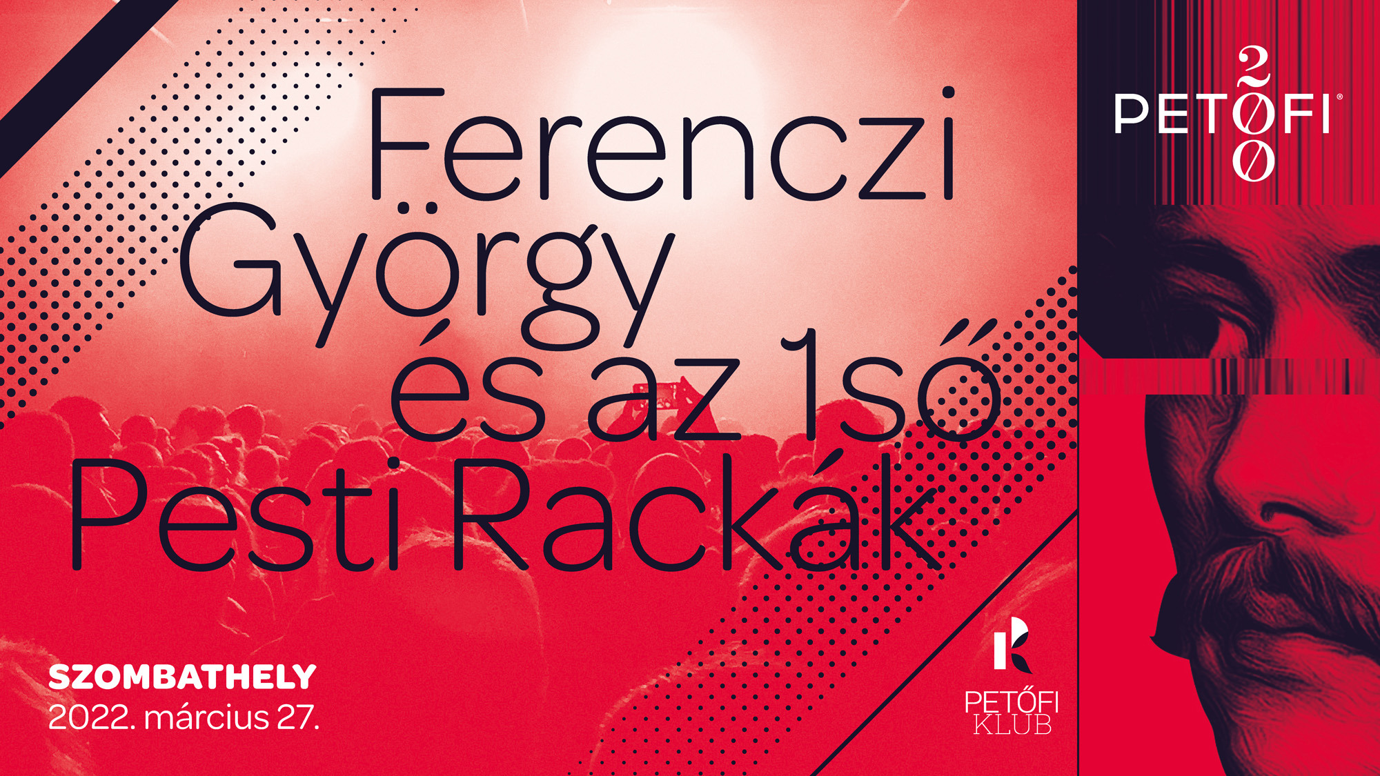 Ha március akkor Petőfi Sándor! Márciusban országszerte megalakultak a Petőfi Klubok, Petőfi Sándor születésének 200. évfordulója alkalmából.Gyere el a szombathelyi Petőfi Klub nyitókoncertjére, és hangolódjunk együtt a tavaszra egy fergeteges Ferenczi György és az 1ső Pesti Rackák koncerttel!