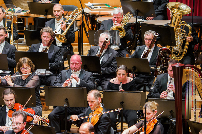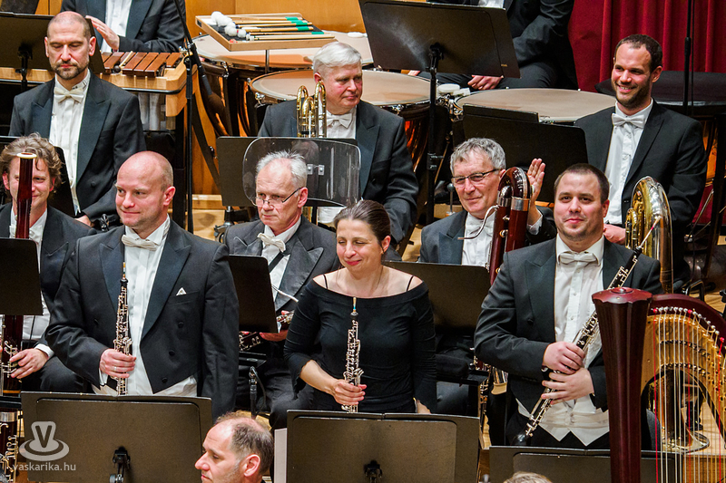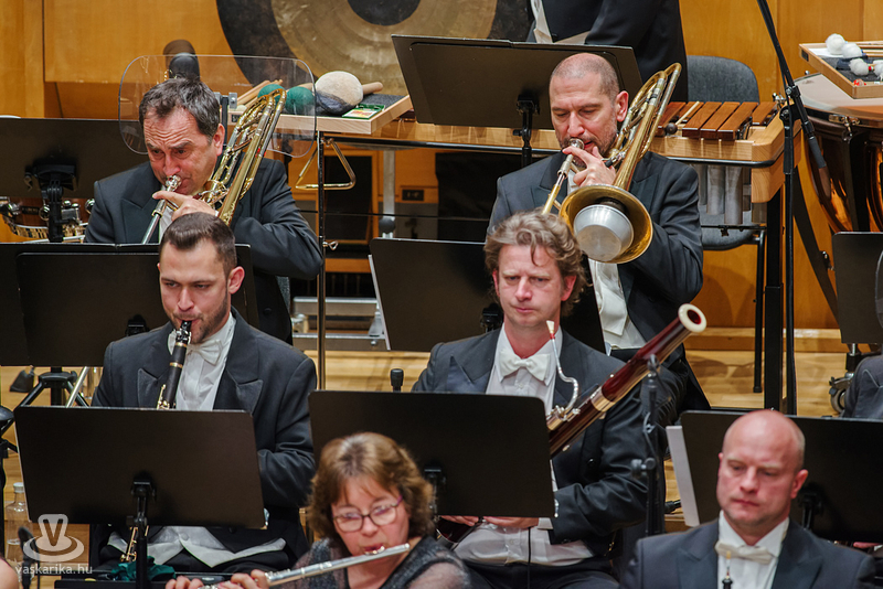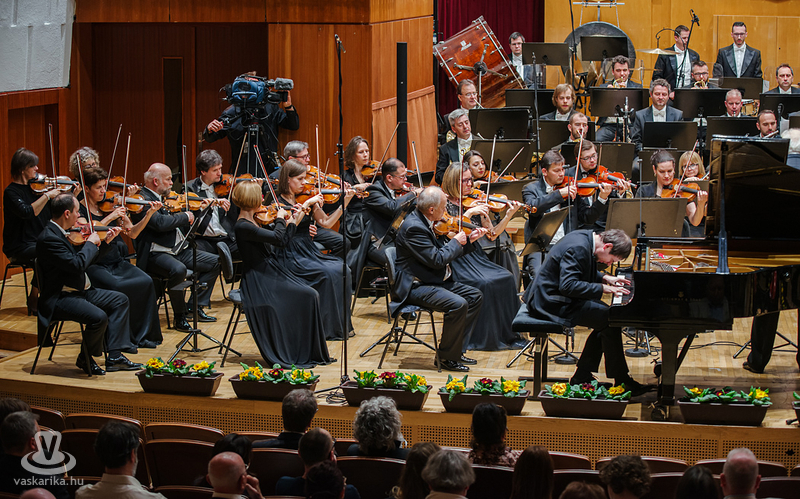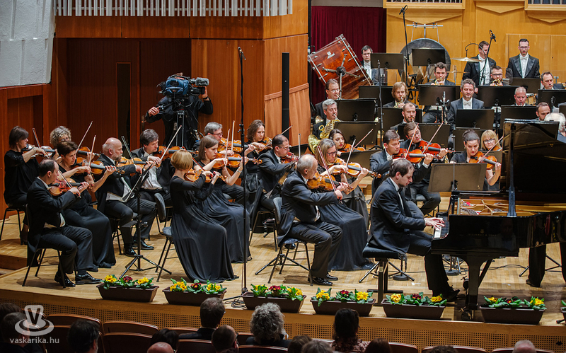 Az eredeti koncepció szerint középen állt a zongora, körülötte az ütőhangszerek: üstdobok, kétféle kisdob, kétféle réztányér, triangulum, nagydob és tamtam. E zongora-ütő mag körül három kórust alkotott a szimfonikus zenekar: a fafúvók-kürtök, a trombiták-harsonák és a vonósok tömbjét. A Bartók Terem adottságai ezt a hangszeres kialakítást nem tették lehetővé, szokásos módon a középre elhelyezett zongorát a vonósok "ölelték" körül, mögöttük a fúvósok, leghátul pedig az ütőspark helyezkedett el. A darabot ma már nem érezzük meghökkentően újszerűnek, mégis megírása után nyolcvanöt évvel is friss, eleven és felkavaró Bartók I. zongoraversenye. Ugyanakkor hihetetlen technikai tudást igényel a szólistától, Borbély László zongoraművész pedig impulzívan, mély beleéléssel interpretálta a darabot.