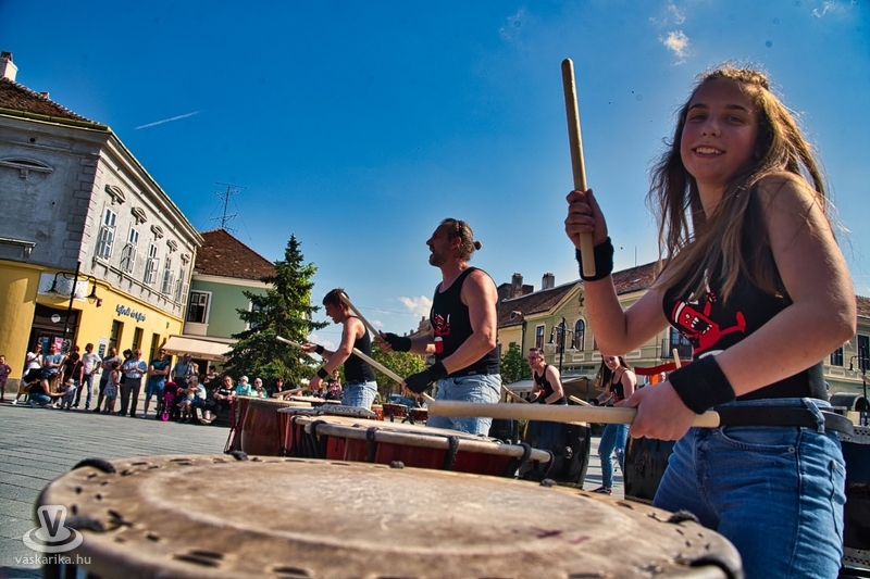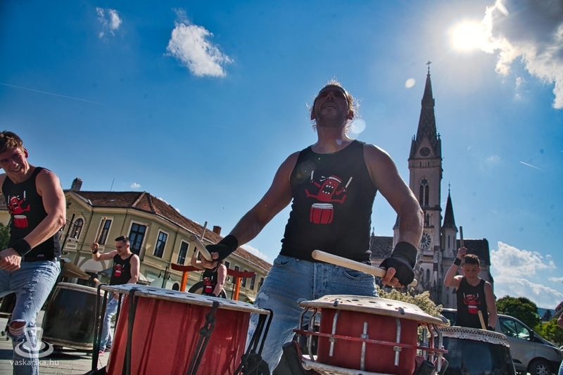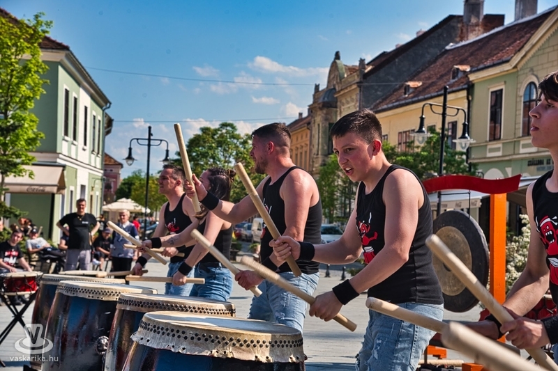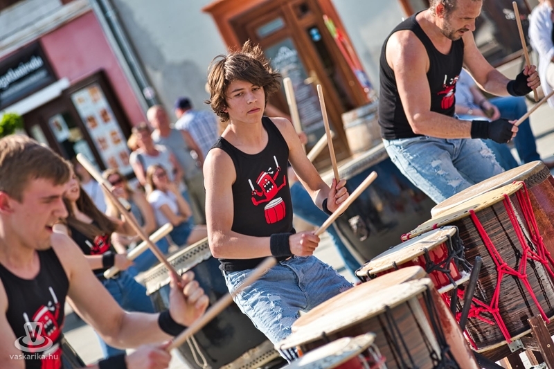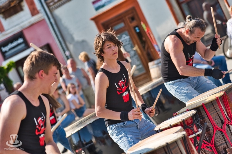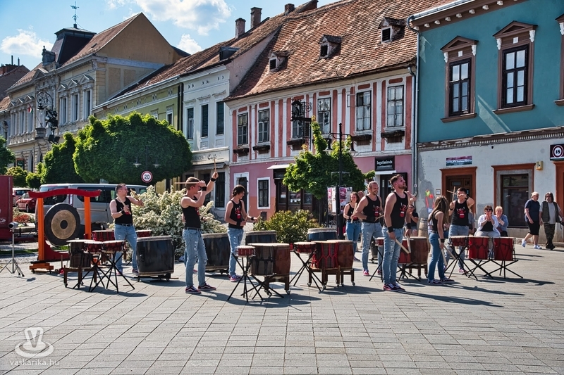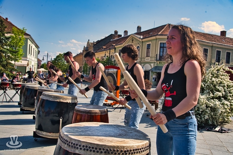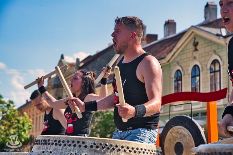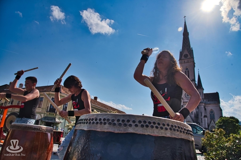 Vasárnap délután a Kőszeg főterének fő látványosságát a taiko dobok és megszólaltatóik jelentették. Az Ataru Taiko dobegyüttes a TérZene program részeként varázsolt energikus ütős show-t a térre.