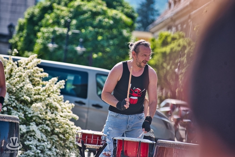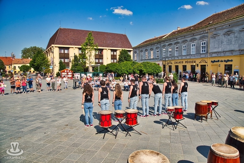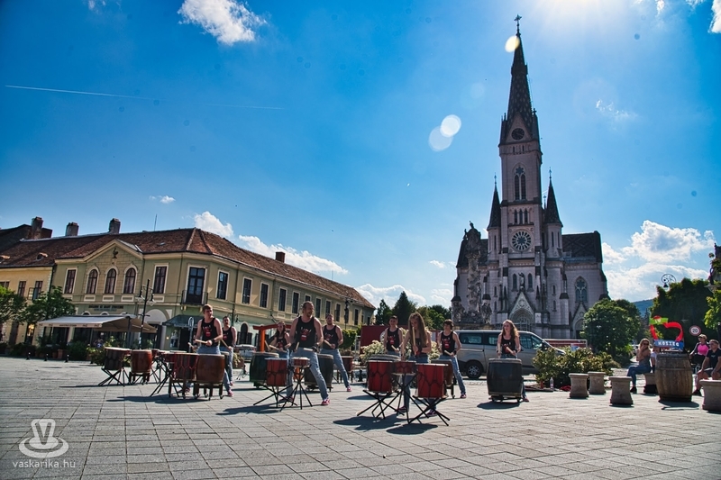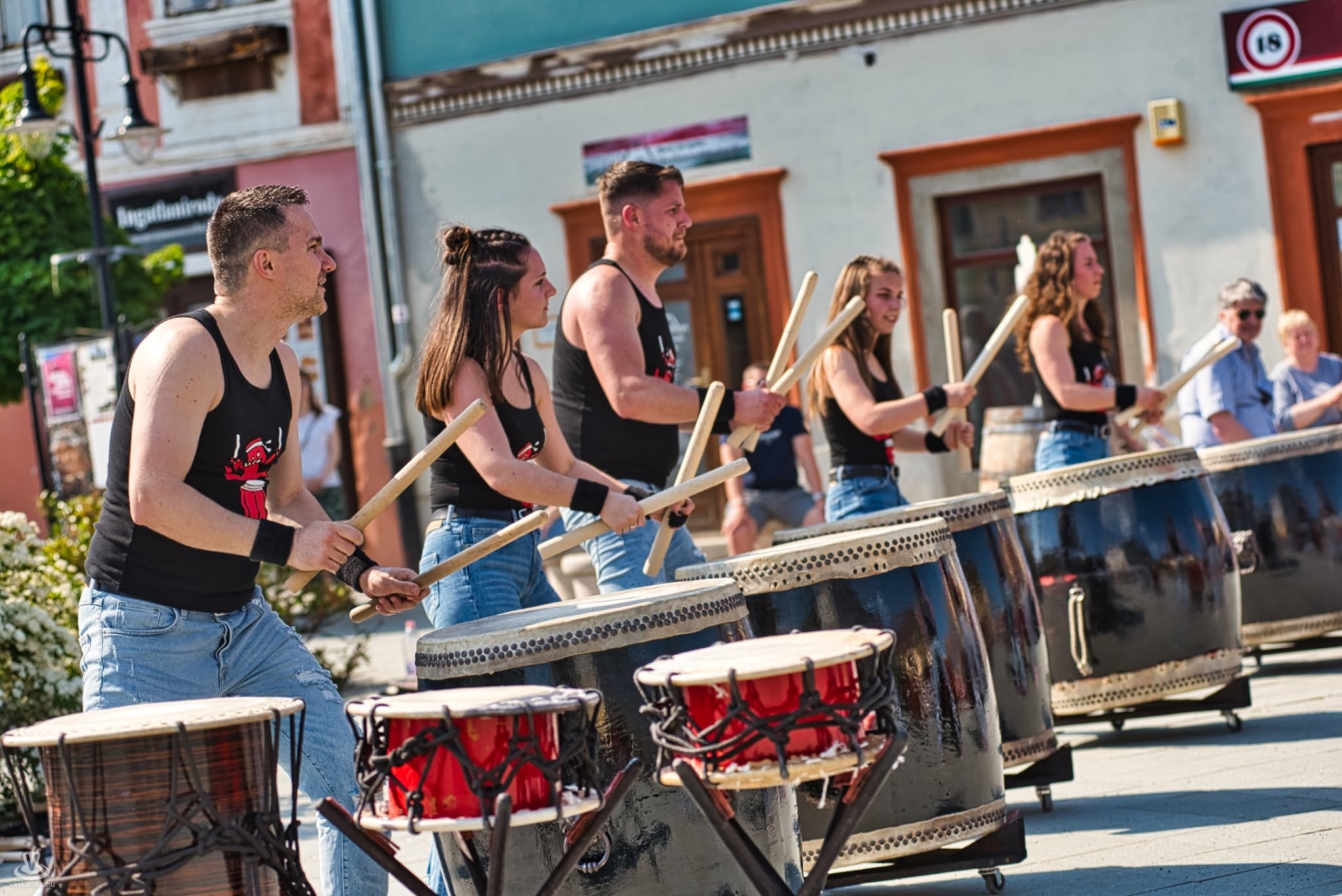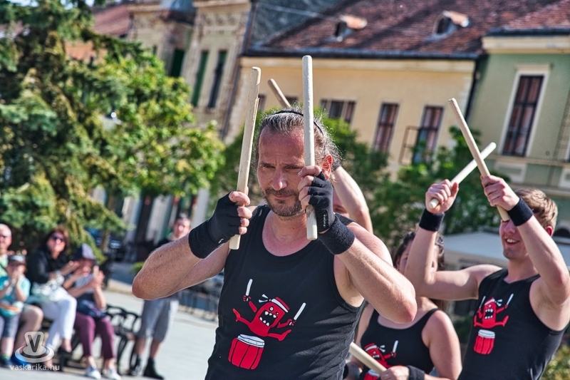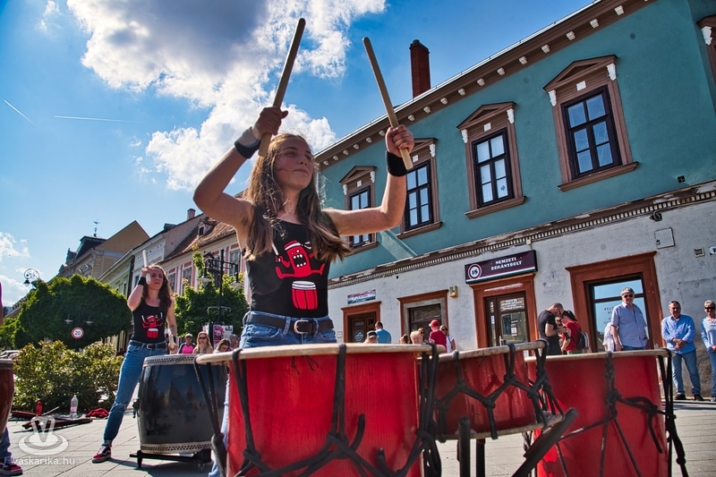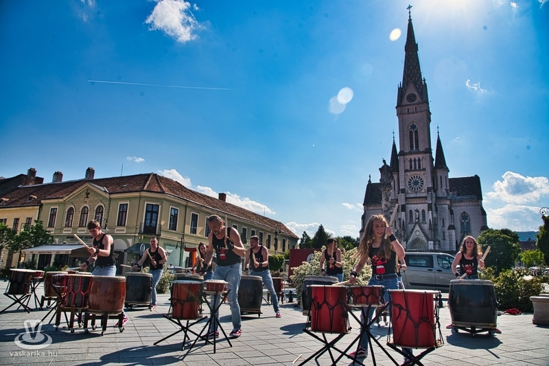 Vasárnap délután a Kőszeg főterének fő látványosságát a taiko dobok és megszólaltatóik jelentették. Az Ataru Taiko dobegyüttes a TérZene program részeként varázsolt energikus ütős show-t a térre.