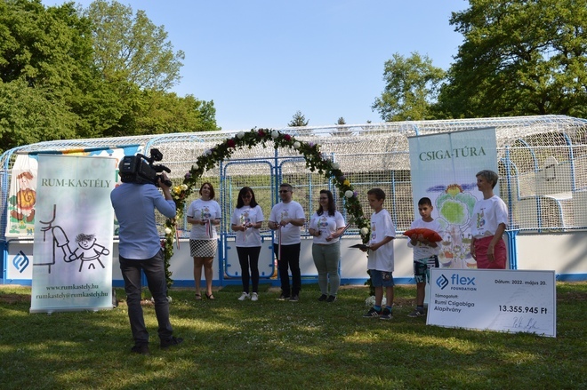 A Rumi Csigabiga Alapítvány 2021 őszén pályázatot nyújtott be a Flex Foundation-höz „Adjon esélyt egy egészségesebb és jobb életre - csökkentsük együtt az egyenlőtlenségeket!" címmel. Ennek eredményeként az Alapítvány közel 13 500 000 Ft-os támogatásban részesült egy olyan speciális készségfejlesztő sportpálya létesítéséhez, amely hatékonyan járul hozzá a Rum-Kastély EGYMI-ben tanuló gyermekek motorikus és szellemi képességeinek fejlődéséhez.