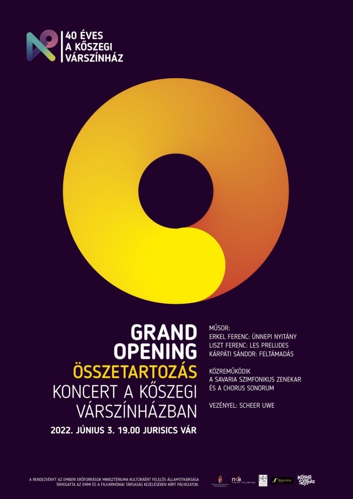 Június 3-án, a Nagy Nyitányon Erkel Ferenc Ünnepi nyitánya, Liszt Ferenc Les Preludes című műve után Kárpáti Sándor, a 150 éve született kőszegi zeneszerző Feltámadás című szimfonikus költeménye hangzik el. A Chorus Sonorumot és a Savaria Szimfonikus Zenekart Scheer Uwe vezényli. Ez a koncert lesz egyben az Előadóművészeti Többlettámogatásból megvalósult új színházi nézőtér avatóeseménye. Köszönet az EMMI Kulturális Államtitkárságának és Fekete Péter volt államtitkárnak. A belépés ingyenes!