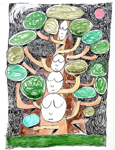 A kiállítás címe Csukás István és Dargay Attila Sün Balázs mesekönyvére és arra utal, hogy a gyermekinek tűnő egyszerű és kristálytiszta világ az elmúlt években a kortárs képzőművészet epicentrumába került. Erményi festészetének és szombathelyi kiállításának is visszatérő, ikonikus szereplői a mesék, rajzfilmek hátterében feltűnő, egyszerre komikus és kísérteties fák. Erményi módszeréhez hozzátartozik az is, hogy nem egyszerűen kisajátít létező formákat, hanem a legtöbbször addig variálja azokat, amíg aktuális festészeti univerzumába, problémakörébe nem tudja integrálni őket.