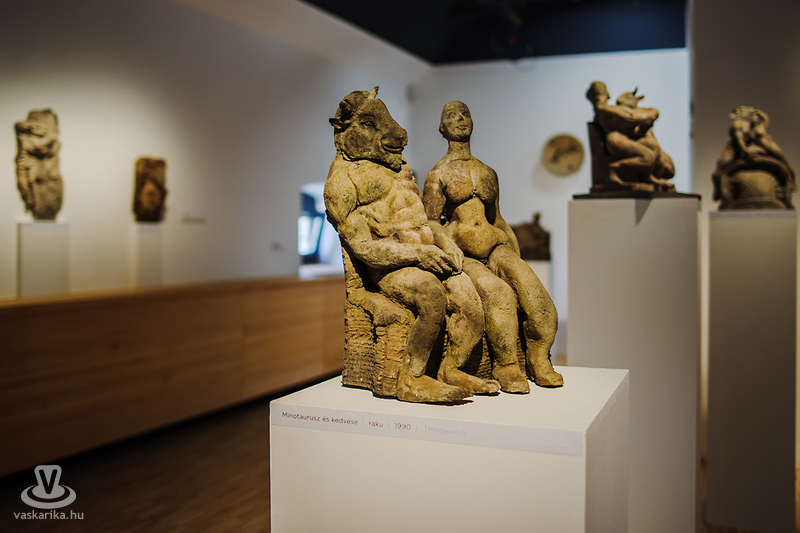 Schrammel Imre egyik meghatározó műtárgycsoportjának fő alakja a bikafejű férfi, a Minotaurosz. Az állandó kiállításban több mitológiai alakkal, egyszerű halandó lányokkal vagy éppen egyedül találjuk kőcserépből és porcelánból megmintázva. A klasszikus krétai mondakör ikonikus alakja Schrammel Imrénél más szerepbe kerül - a férfi-nő kapcsolat halvány egymásra rezdülésétől egészen a kiábrándulásig, az egyedüllét, a haldoklás mozzanatáig széles skálát mutat be. A tárlatvezetés a figurák elsődleges megjelenésén túl az apró részletekben rejlő mélyebb értelmezési lehetőségekre is megpróbál rávilágítani.