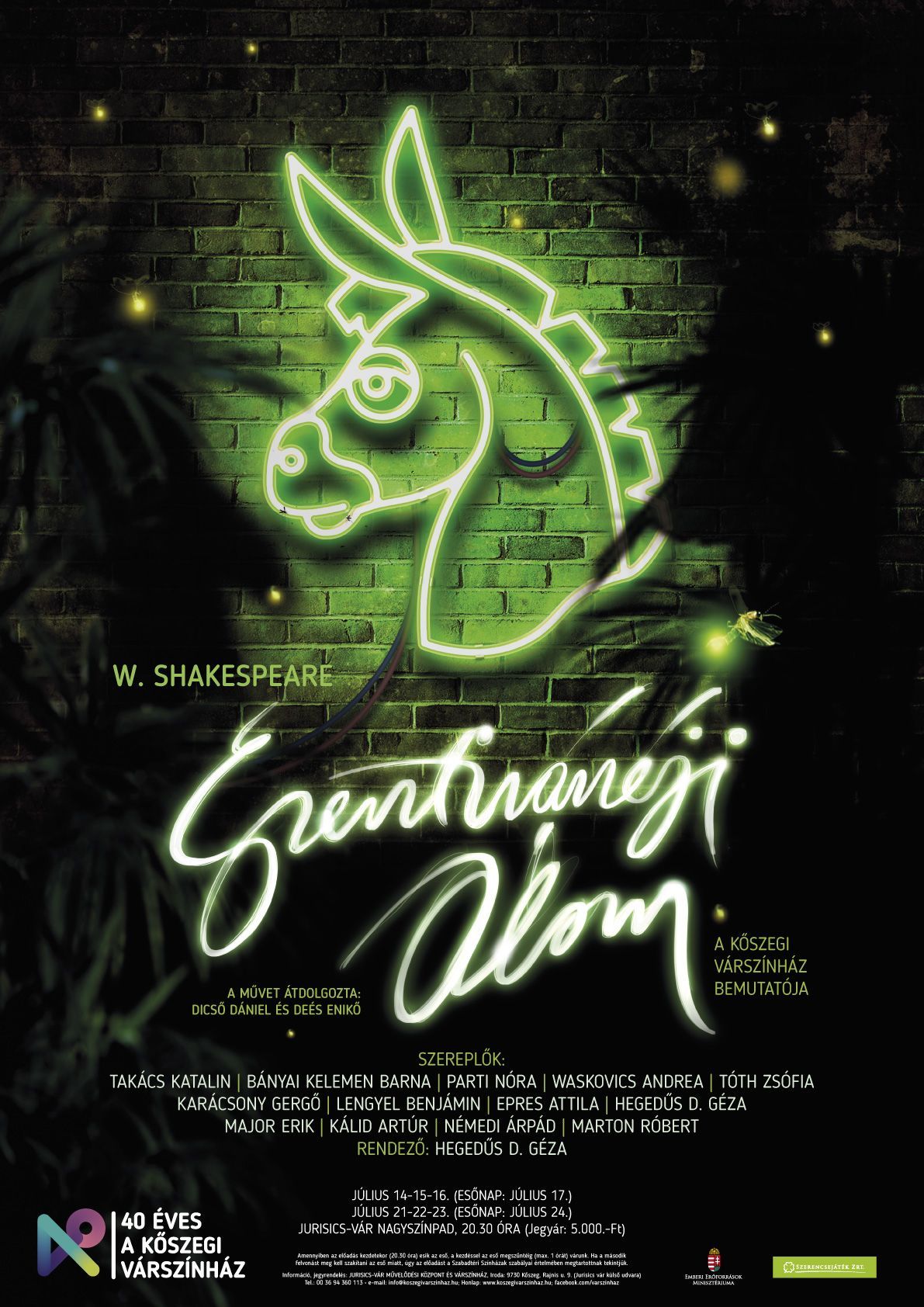 Közben már próbálják Kőszegen a Szentivánéji álmot Nádasdy Ádám fordításában, Hegedűs D. Géza rendezésében. Shakespeare művének július 14-én lesz a premierje, játszik benne - többek között: Takács Katalin, Hegedűs D. Géza, Epres Attila, Bányai Kelemen Barna, Parti Nóra, Waskovics Andrea, Tóth Zsófi, Kálid Artúr, Némedi Árpád, Molnár Róbert. Ezzel a produkcióval nyit a Kőszegi Várszínház 10 napos fesztiválja, amely összefogja ünnepi nyarának közepét. A kőszegi születésű Gergye Krisztián táncművész, koreográfus pedig már elindította 40 napos „emlékinstallációs" projektjét, amelyet egy rendkívül különleges táncperformance előadással zár.