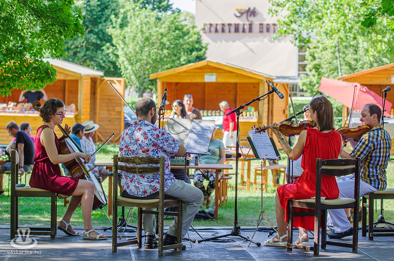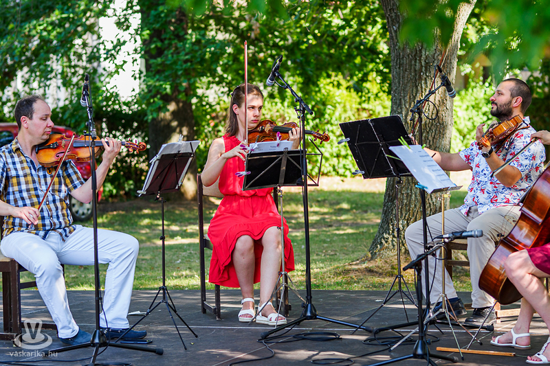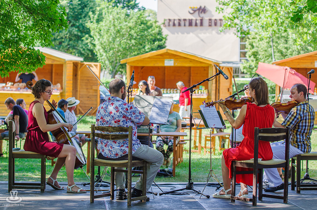 A büki Termelői Piac árnyas fái alatt kalauzolta közönségét könnyed és komoly, népszerű és különleges művekkel a zene sokszínű univerzumában a Berki Vonósnégyes.