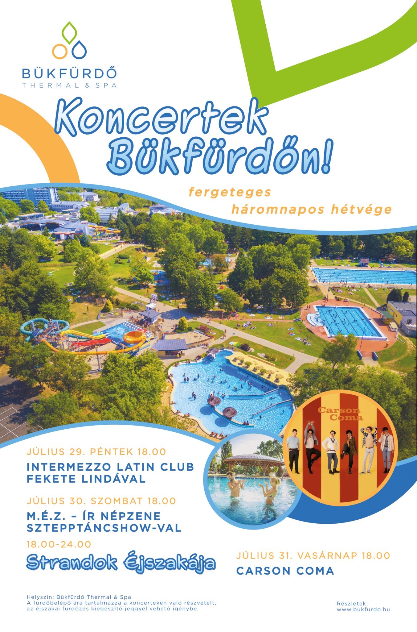 Latin fiesztát hoz az Intermezzo Latin Club, ír népzenét a M.É.Z. és a legfrissebb slágereket a Carson Coma: háromnapos, fergeteges hétvégével zárul a július Bükfürdőn.