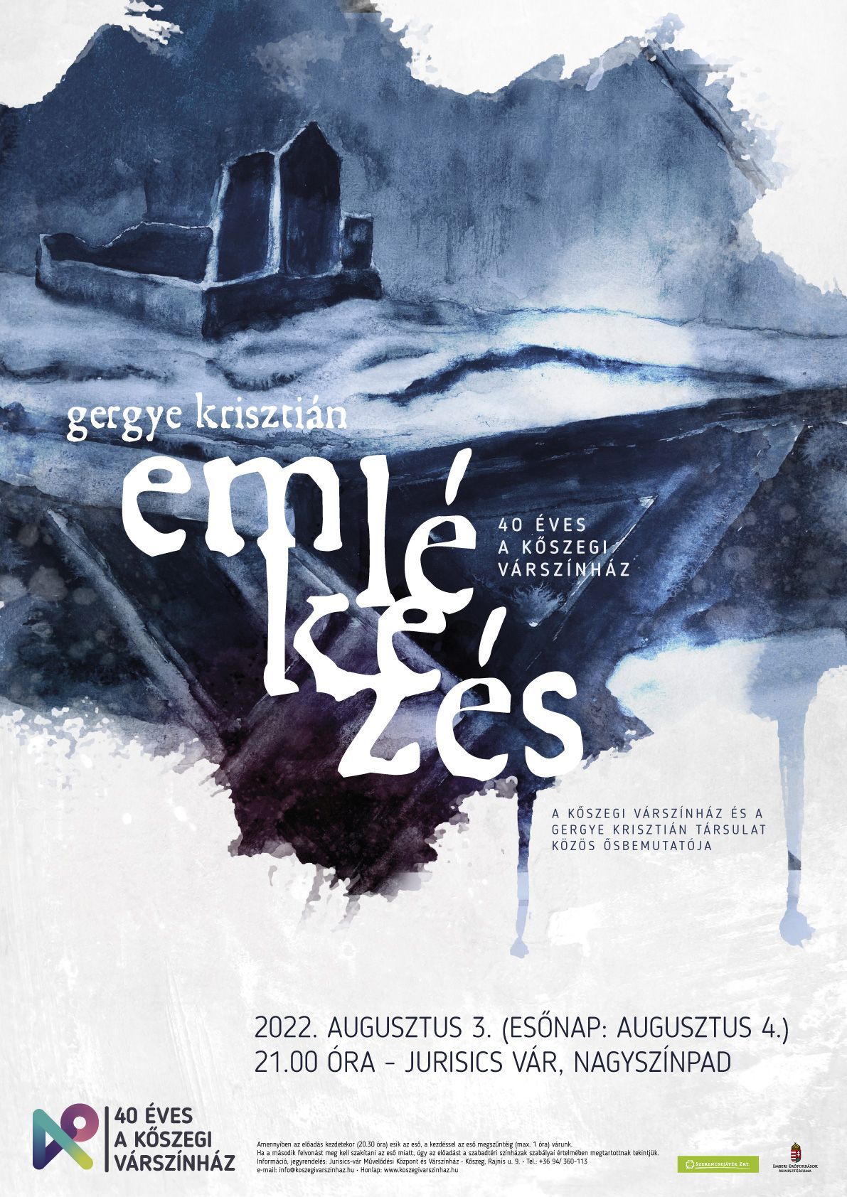 A Kőszegi Várszínház - fesztiválon túli - nyári ünnepi évada augusztus 3-ig tart. Aznap is ősbemutató lesz itt: Gergye Krisztián kőszegi születésű koreográfus, táncművész Emlékezés című előadása, a Kőszegi Várszínház és a Gergye Krisztián Társulat közös „emlék-műsora" a 40 éves színházhoz kapcsolódóan. Gergye Krisztián egy hónappal ezelőtt a Jurisics vár ágyúpadjához (ágyúteraszához, ágyúállásához) 40 festményt tett ki - kiszolgáltatva esőnek, szélnek, napnak. A festményeket ő készítette a Kőszegi Várszínház elmúlt negyven évének fotóiról. Minden évből egy-egy pillanatot ragadott ki. 40 napon át fotókon örökíti meg Gergye Krisztián a képek küzdelmét a föld erodáló erőivel. A fotókból videóinstalláció lesz, nyomon követhető a „negyvenek" nagy változása. A 40 nap elteltével a „lebomlott", átváltozott, új formát öltő képek új művekké lesznek, emlékművekké. Az „emlékváltozás" Gergye-projekt záróeseménye - és egyben a Kőszegi Várszínház ünnepi nyarának befejezése - a képekhez kapcsolódó Gergye-performance, az „emlék-műsor" augusztus 3-án.