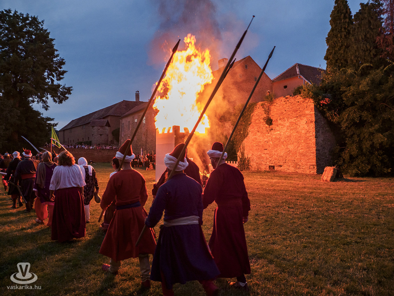 "Ég a város, ég a vár is" - A Kőszegi Ostromnapok egyik legizgalmasabb pillanata, a "tüzes török támadás" csalta ki a látogatókat pénteken a várárokhoz, ahol a török csapatok rajtaütöttek és felgyújtották a várárkot.