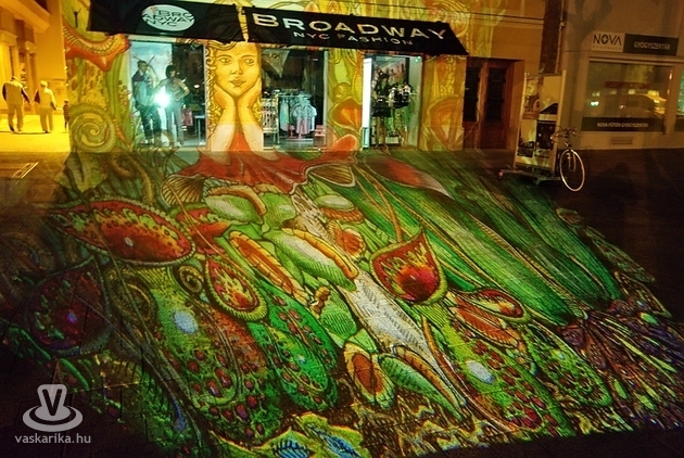 A vizuális élmény a főtéren is megvalósult már az első este, amikor három tömbházat vetítettek be a nagyszínpad környékén. A moziaula, mint programhelyszín működik sötétedés után, nappal pedig ott található a fesztiválközpont, tehát állandó ott a jövés-menés, mozgolódás, nem beszélve a zseniális filmfelhozatallal bíró versenyről. A Fő tér is rendesen be lett lakva, a vendéglátó udvar a nagykönyvben megírtak szerint lett kialakítva, szemben a színpaddal, amit minden pontról látni az U alakban elhelyezett söntések padjairól is. Szombattól pedig már programok indultak a Bartók Terem és a Zsinagóga-udvar színpadain is, valamint a Bloom-házban, továbbá az MMIK is otthont ad eseményeknek. A nagyközönség sajnos eddig még a kisebb helyszíneket, illetve a fizetős programokat nem tette annyira magáévá, mint a nagyszínpadi produkciókat, de reméljük, hogy egyre többen fedezik fel a helyszíneket, és az ott kínált befogadnivalók szépségét. Nem úgy, mint az az enyhén szólva is túlsúlyos, konfekcióruhás középkorú hölgy, aki az Uránia-udvarból egy pillantást vetve a moziárkád színes világára, így szólt családjához: fújj, micsoda elvont! Az egyensémákat nem magukénak érzők azonban nyugodtan vegyüljenek el - akár a hétköznapokon is - a helyszíneken, hisz kijelenthetjük, hogy mindannak ellenére, hogy parádés koncertek zajlanak a főszínpadon, nekünk ennek a fesztiválnak a szépségét az a spontán kialakuló és ezerféle fíling adja, amibe a nap bármely percében beleszaladhatunk.