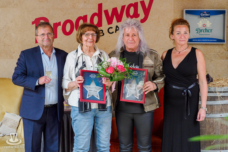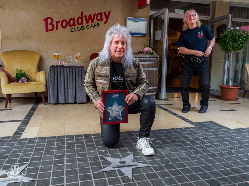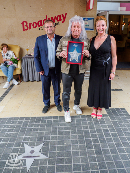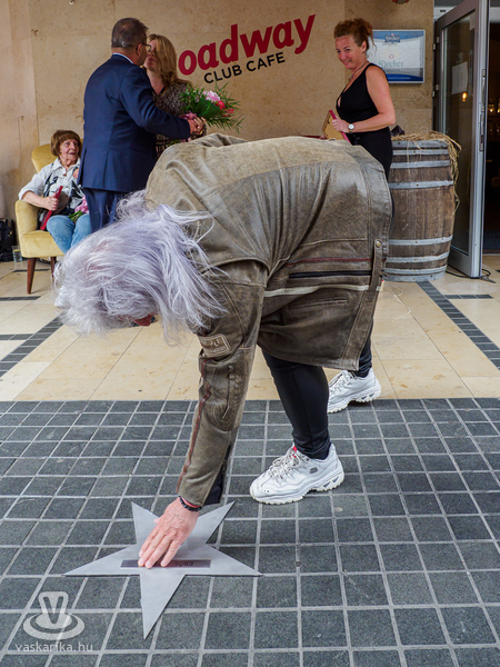 Ezután a másik csillag tulajdonosa, az örökifjú Erős Attila és párja érkeztek a Broadway Cafe sétányára.