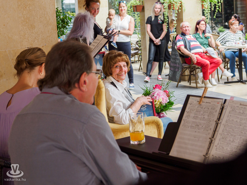 A két díjazott tiszteletére Kiss-Vincze Eszter Bach-dallamokat fuvolázott, majd Vas István Andor játszotta el zongorán a Lord együttes Vándor című dalát, amit Erős Attilával együtt énekelt a közönség.