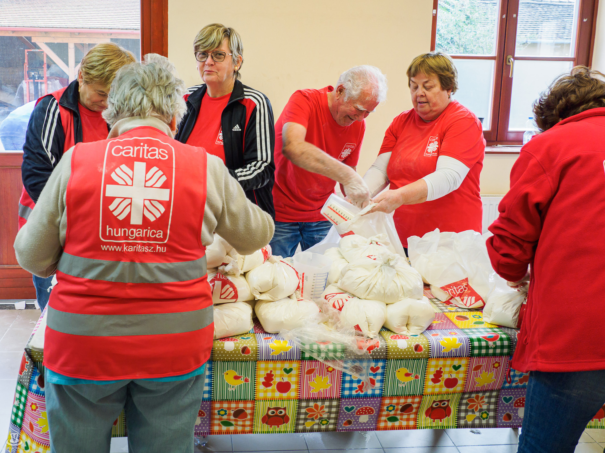 Szorgos kezek szortírozták a Szombathelyi Egyházmegyei Karitász Ady téri épületében 2 kg-os csomagokba azt a 4000 kg lisztet, amit a Magyarok Kenyere - 15 millió búzaszem program részeként kapott a jószolgálati szervezet. Az egyházmegyén belül 28 vasi és 2 zalaegerszegi plébániához jut el az adomány elsősorban oda, ahol idősek vagy nagycsaládosok élnek, és a sütés-főzés mindennapjaik része.