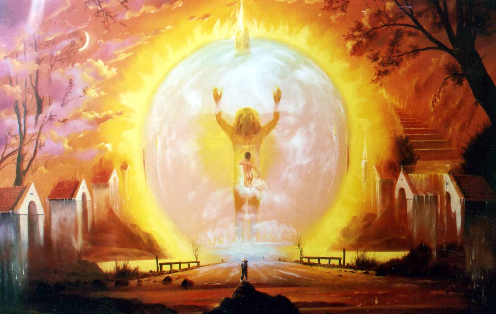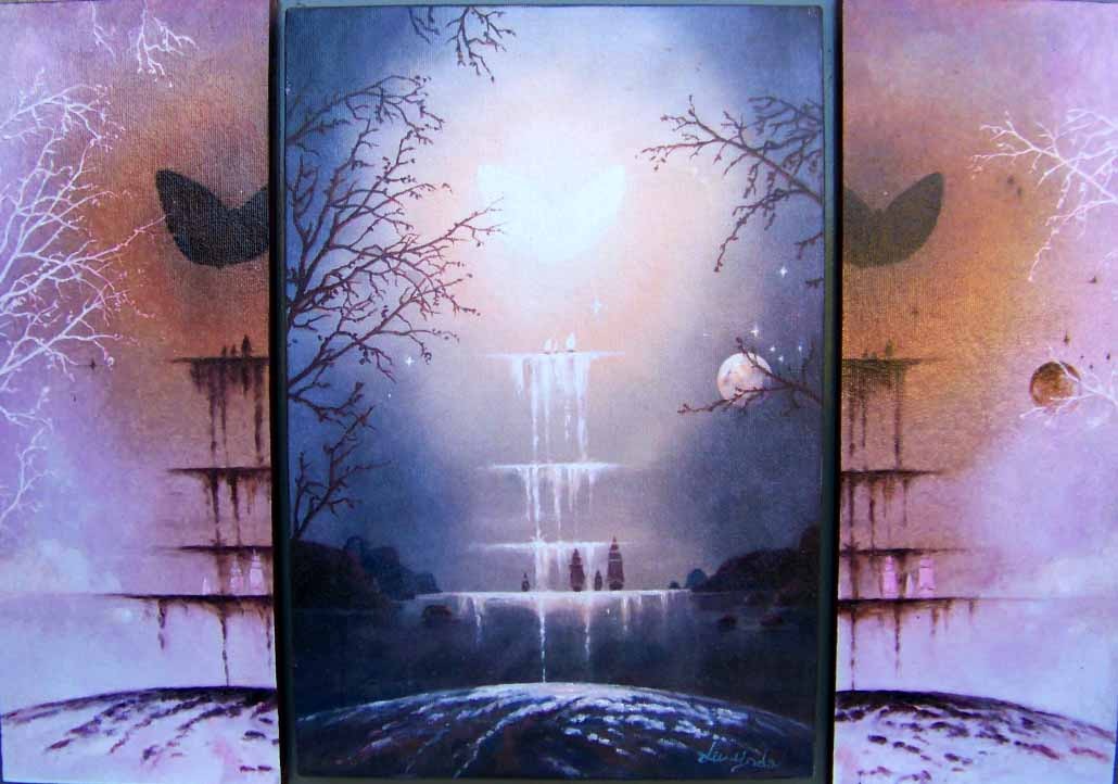 ÜZENET AZ ÁLMOKON TÚLRÓL olaj-fatábla, 80 x 120 cm, 2005.