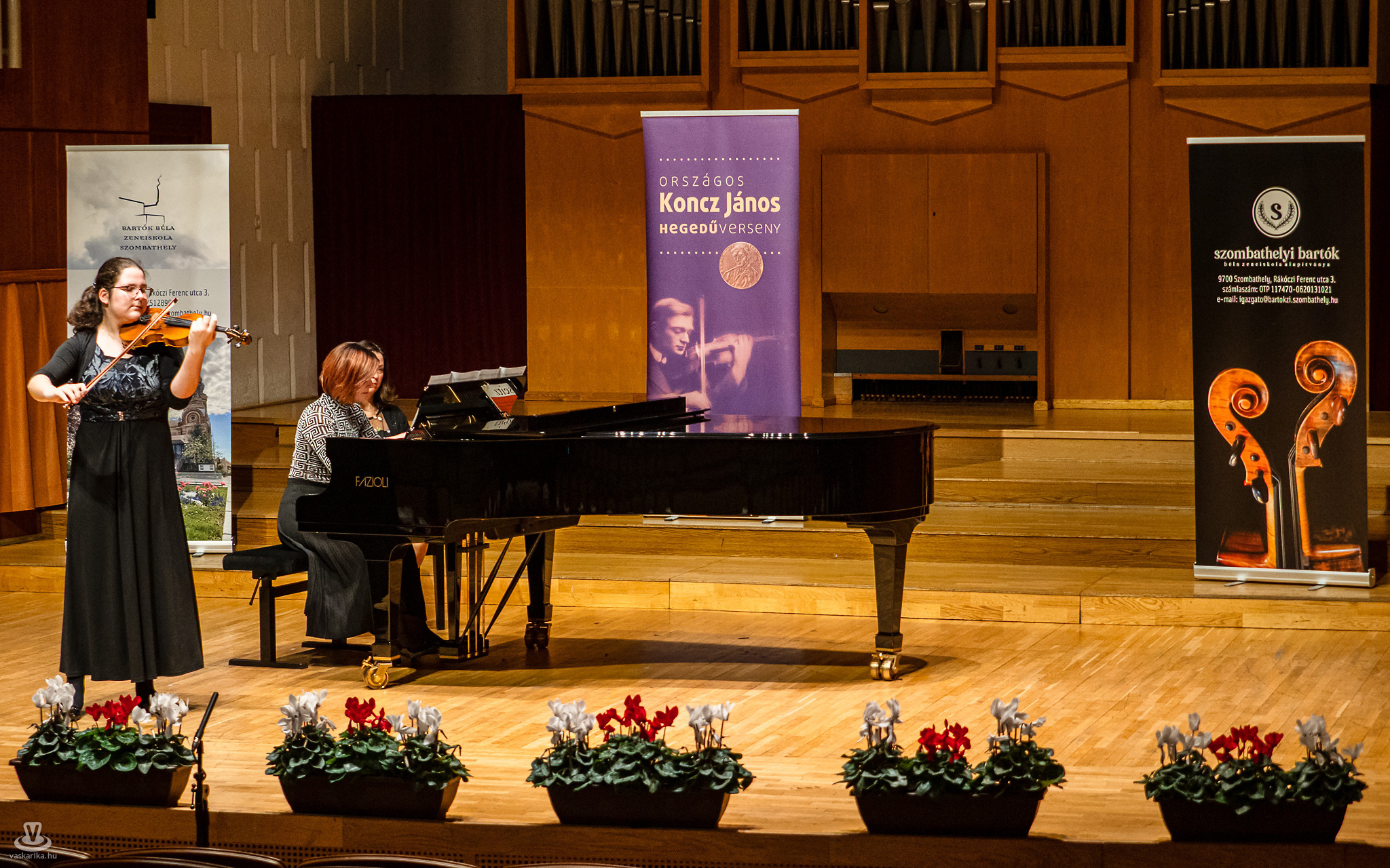 Pénteken délelőtt négy korcsoport 39 hegedűsnövendékének játékával elkezdődött a XVII. Országos Koncz János Hegedűverseny a Bartók Teremben. A hegedűverseny szombaton délelőtt folytatódik, a díjkiosztó gálára délután fél 5-kor kerül sor, amin a díjazott versenyzők is fellépnek. Kameránkkal a III. korcsoport növendékeinek versenyprogramját örökítettük meg.