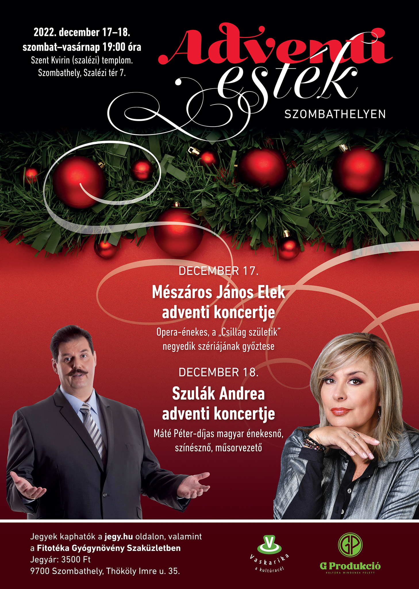 December 17-18-án a szombathelyi Szent Kvirin (Szalézi) templomban két meghitt hangulatú adventi koncertre várják a közönséget.