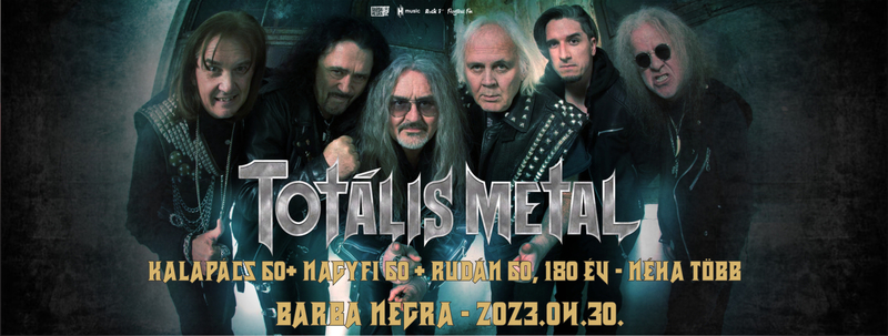 A Kalapács József (ének), Nagyfi László (gitár), Rudán Joe (ének), Pazdera György (basszusgitár), Tarca László (dob), és Nagy Dávid (gitár) alkotta Totális Metal formáció a Pokolgép metal himnuszait idézi fel ezen az április végi estén.