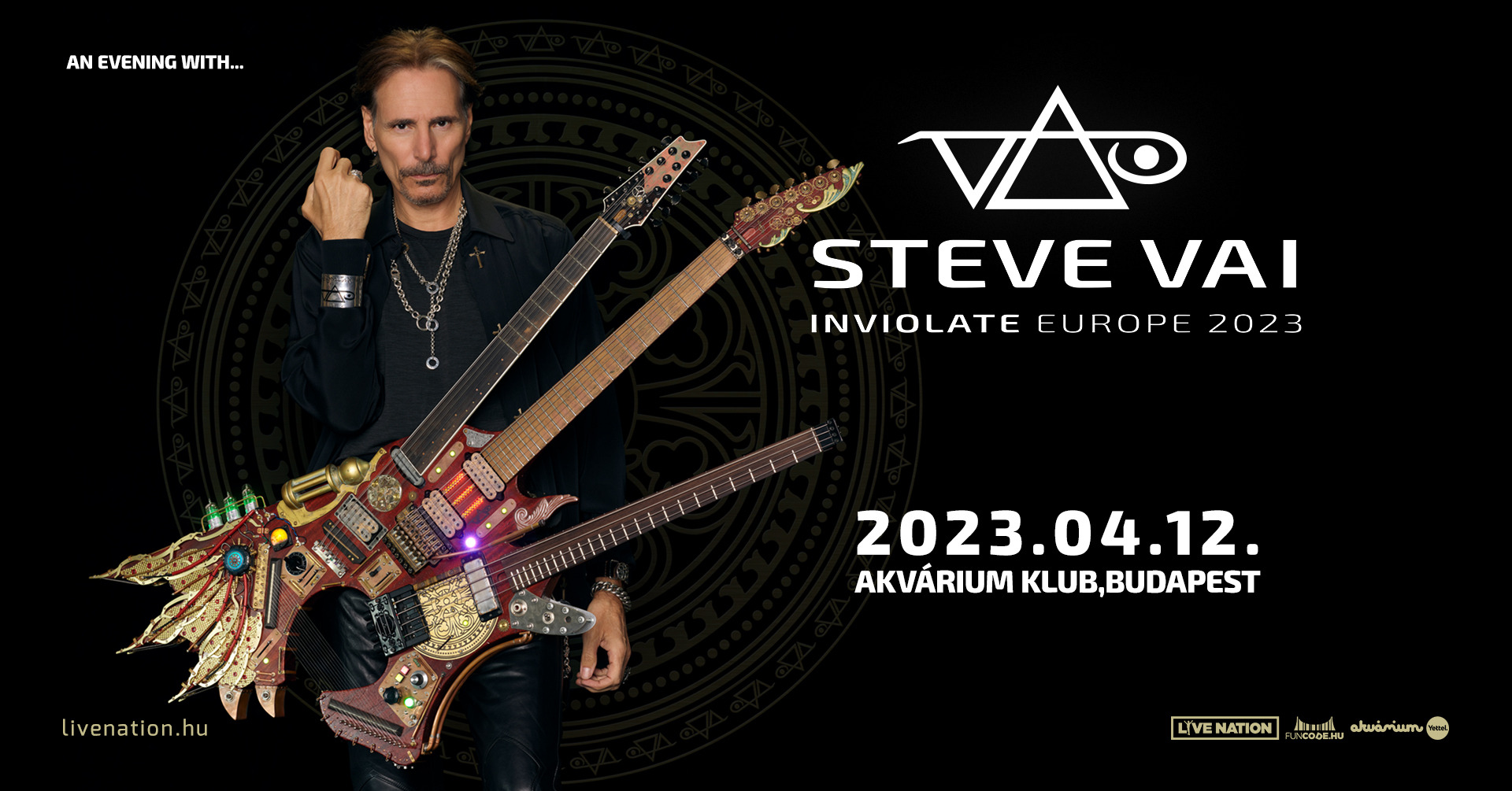 A háromszoros Grammy-díjas Steve Vai napjaink egyik legnagyobb hatású gitárvirtuóza, lenyűgöző játéka és technikai újításai nyomott hagytak a modern rockgitározáson. A zseniális zenész eddig 17 szólóalbumot jelentett meg, legutóbbi anyaga tavaly érkezett, Inviolate címmel, amelyet április 12-én az Akvárium Klubban élőben is hallhatunk.