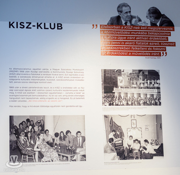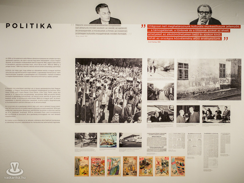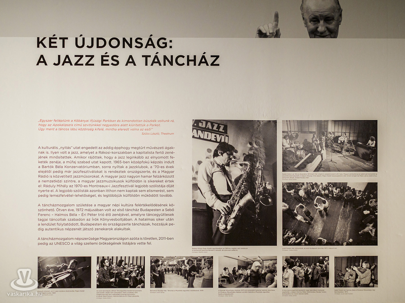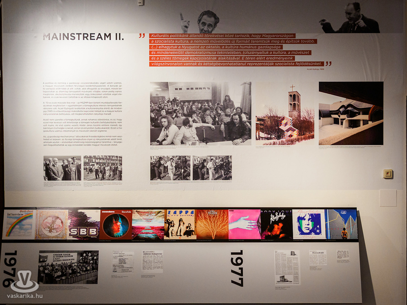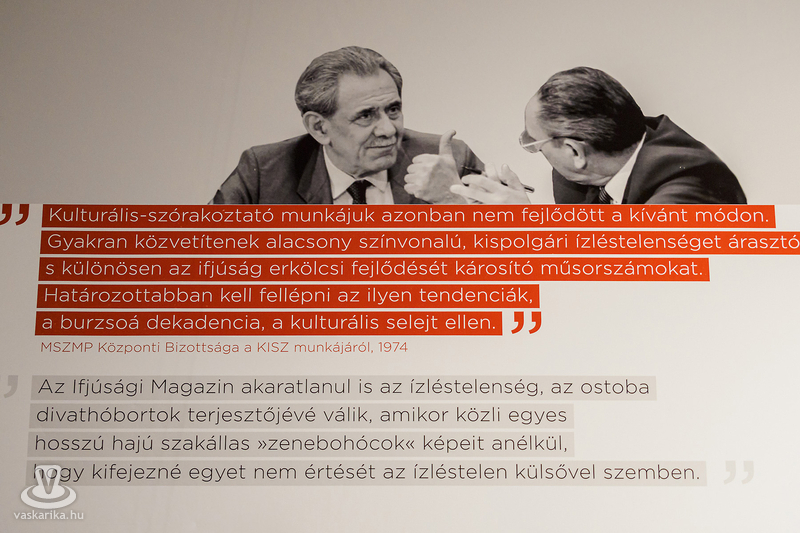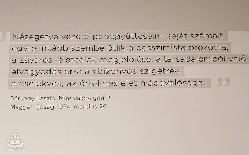 A politikai-, társadalmi háttér megvilágítása - főként tablókon - mindkét helyszínen tökéletesen sikerült, igaz, nem volt nehéz. Rengeteg anyag van róla. A korai Kádár-korszak, a fehéringésnyakkendőmégkötelezővolt időszaka még keménykedett, mint Rajnák elvtárs a Budai Ifjúsági Parkban, a hanglemezek megjelentetése még kuriózumszámba ment, ugyanakkor, főleg a fővárosban, virágoztak a beat-klubok (erről precíz kimutatás van a Zene Házában). A fiatalok már az új világzenét nemcsak a Radio Luxembourg, vagy a Szabad Európa rádióból hallgathatták, hanem a klubokban zenélő hazai epigonoktól is, akik egymással versenyezve koppintották le a brit slágerlistás nótákat. A '68-as Táncdalfesztivál aztán - kénytelen-kelletlen - zöld utat nyitott a beatnének: az Illés együttes minden díjat besöpört ekkor. Az Aczél György-i kultúrpolitika ekkor kezdett igazából dolgozni, mint ahogy azt Szombathelyen is láthattuk a tablókon, és mára a már közismert 3 T, a támogatott, a tűrt és a tiltott kategóriák kezdtek a műfajban működni - középsővel, mind az eddigiekhez képest új, és kompromisszumképes fiókkal. Aczél a három T-jével éppen a szabadság hiányát jelölte körbe: kinek mit NEM SZABAD tennie. A 70-es évek már könnyebb volt, a '80-asakról nem is beszélve, persze a Beatricének vagy a P. Mobilnak ugyanúgy ekkor sem volt nagylemeze, mint Radics Béla zenekarainak.