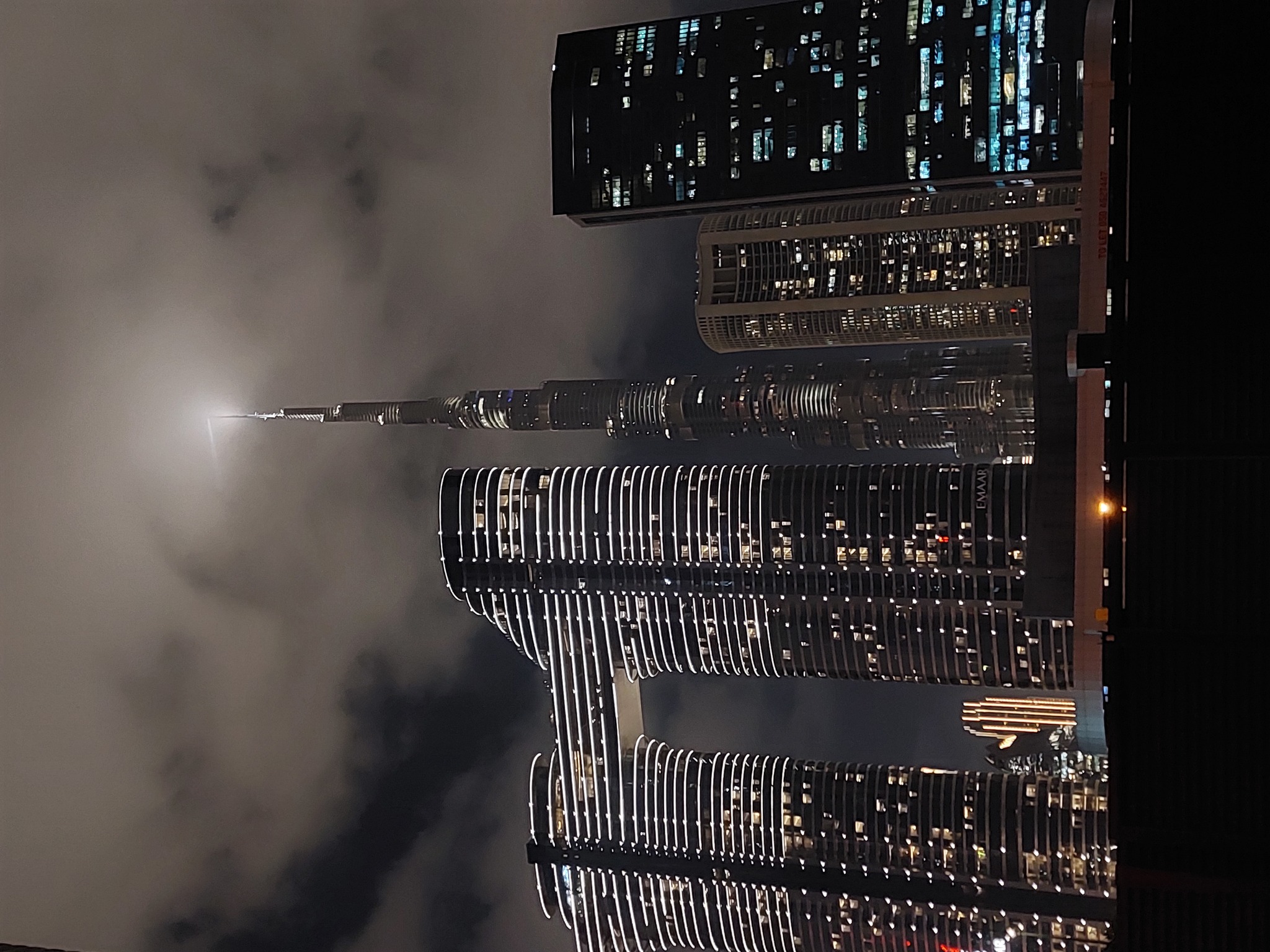A másik feledhetetlen élmény, pontosabban látvány az első koncertnap estéjén ért, már a hangverseny után. Kicsit felhősebb volt az idő, és az impozáns felhőkarcolók látványa önmagában is magával ragadó volt, ám a Burj Khalifa mindegyik közül kiemelkedett a maga 828 méteres magasságával, a látnivalók non plus ultrájaként egy tetején „ülő" felhővel.