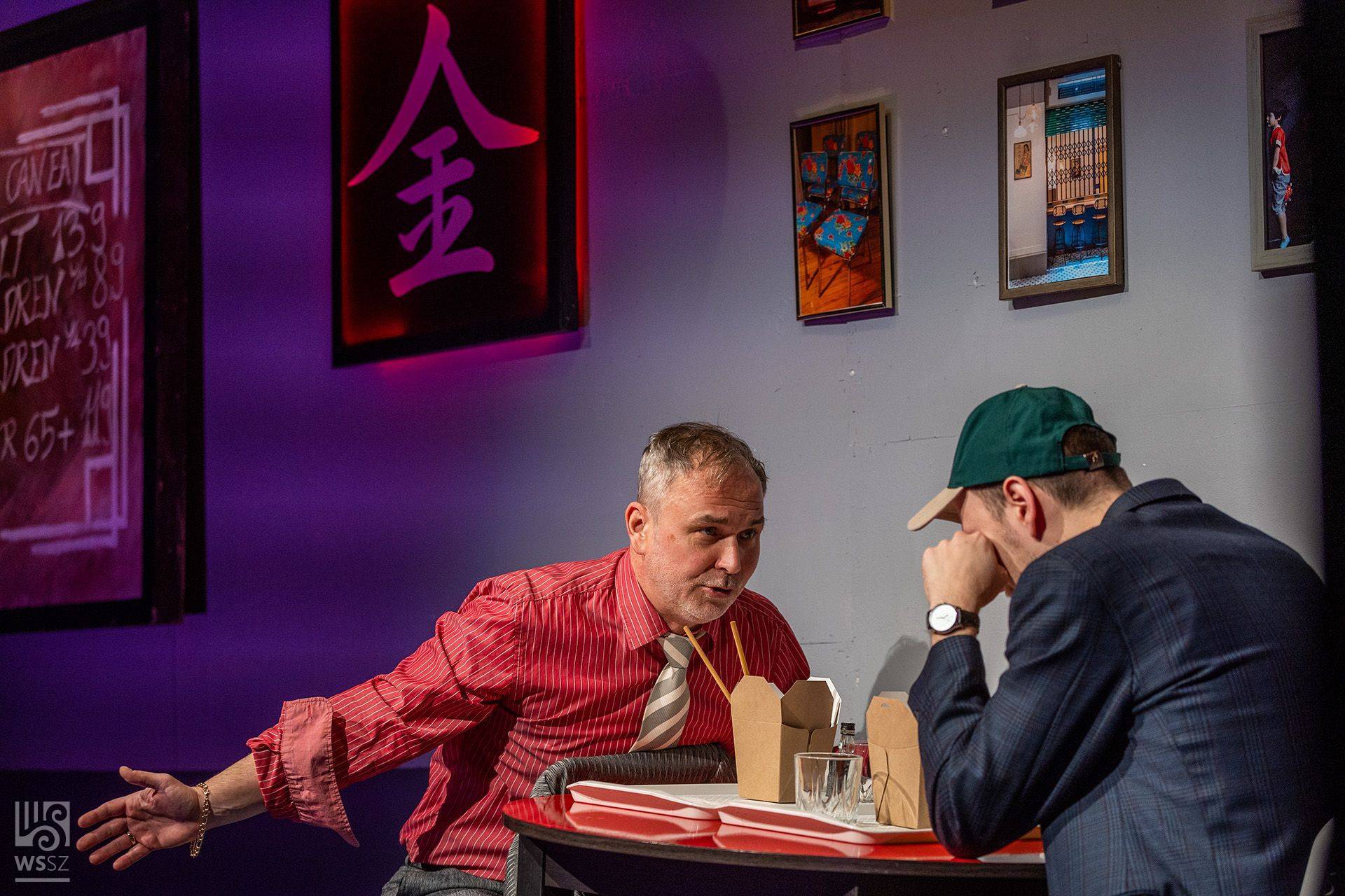 Rusznyák Gábor rendezése kellően rátalált az arányokra, a karakterek önállóak, megvan a saját dinamikájuk, mozgási terük, mégis könnyen be tudunk vonódni érzelmi világukba, megértjük motivációikat, noha nem mindig értünk velük egyet. A történet gördülékenyen tárul elénk, a megfelelő mértékben szellemes, az indulatkitöréseknek, olykor nyomdafestéket nem tűrő szavaknak, kifejezéseknek is megvan a maguk helye. A díszlet (a kínai étterem, az iroda), mely szintén Rusznyák Gábor munkája, pontosan illik a történethez, a karakterek élethűen mozognak benne.