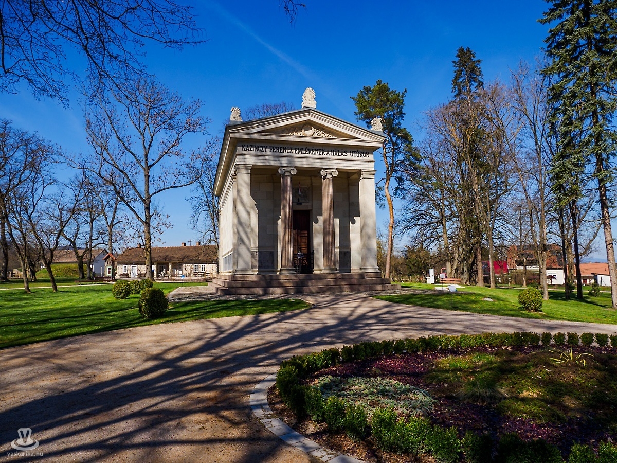 A múzeumból kilépve az egykori Kazinczy-kúria parkjában - Ybl Miklós tervei alapján - épített emlékcsarnokot csodáltuk meg, amely a magyar klasszicista építészet remekművének számít. Az 1873-ban átadott, a görög templomcsarnokokat idéző mauzóleumban Kazinczy korából származó könyveket, személyes tárgyait, kéziratokat, festményeket és szobrokat látunk. Itt található Kazinczy Ferenc márvány mellszobra is, amely Ferenczy István (1873) alkotása. Érdemes egy pillantást vetni az emlékcsarnok csodás, kazettás díszítésű mennyezetére is.
