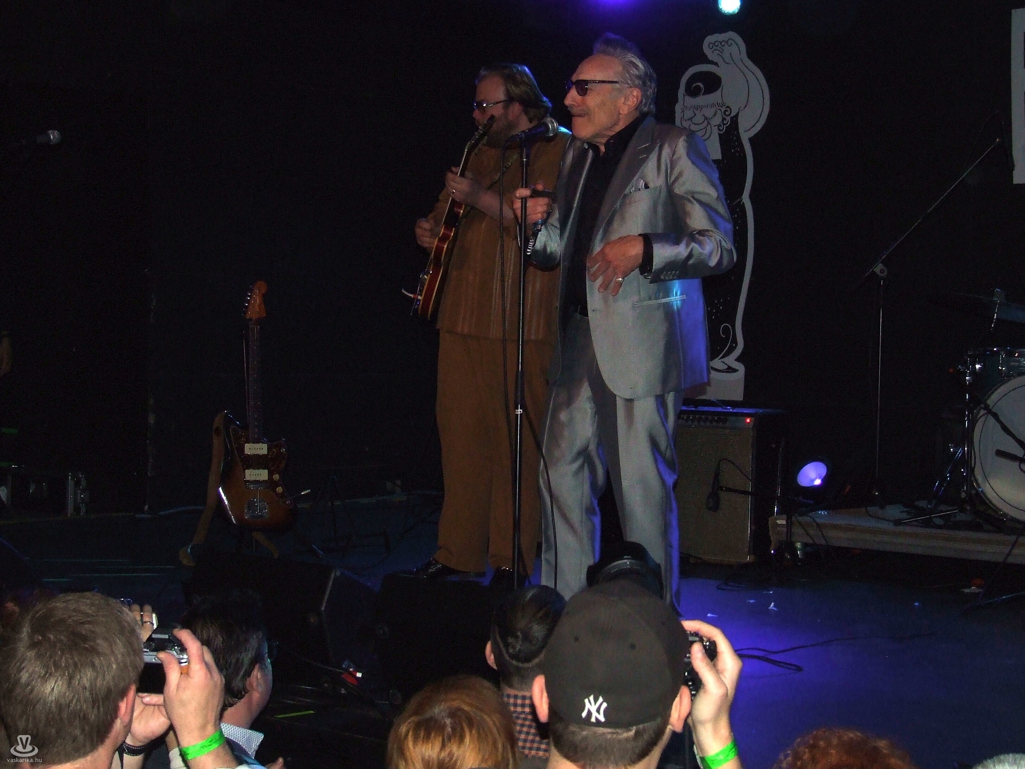 Lenn, a Fekete Gombban azonban kezdődött a fesztivál legrangosabbjának tartott előadója, Rick Estrin and the Nightcats bulija. Egy gombostűt nem lehetett leejteni a teremben, a hőfok is 10 fokkal több volt, mint 3 emelettel feljebb, amikor az amerikaiak a színpadra álltak. Valóban más a fellépőetikett ott, mint Európában. A 74 éves zenekarvezető halványkék fényes öltönyben, a gitáros vasalt nadrágban, a dobos fehér ing - nyakkendő viseletben jelent meg, és még a ritmusra együtt táncolás sem volt ciki nekik. Na, de mit tudnak? A kemény chicagói urban bluest nyomták. A Siegel- Schwall Band 70-es évekbeli sikeres hangszerelése jött át nekem, így a gitár és harmonikaimprók fele-fele arányban kerültek játékba. Christoffer Kid Andersen, a Randy Bachman kinézetű norvég gitáros, aki a mellette álló harmonikásnál jó két fejjel magasabb volt, mindent tudott a gitározásról, amit kellett. Igaz, ezt csinálja jó 20 éve az élvonalban. Lorenzo Farrell, a billentyűs-basszeros - mivel ő is külön billentyűivel hozta a basszust orgonája tetején - már nem volt szólista minőség. Korábbi basszgitáros múltja is ezt jelzi: abban nagyon otthon van. Ellenben a szintén nagy múlttal rendelkező dobos, Derrick Dmar Martin mestere a szakmájának, és ragyogó showman. Mert a pénteki előadásuk valódi show volt. A közönséget irányítani lehet, sőt kell, áll a használati utasításokban. A publikum megtapsoltatása, a „feleltetés" közösséget generáló játéka is az, de mikor lemegy a zenész a közönség soraiba, és ott eldobol a hallgatói fején-vállán, vidáman mosolyogva, fel-alá futkosva, az megörvendezteti a lelket is, mosolyt fakaszt az arcokra. Ugyanezt megcsinálta Kid is: egy jó tízperces magánszámában gitártudásáról adott számot. Lassú bluesok, lépegetős shuffle-k, pörgő rockok, rap-et idéző ritmus és ének, médium-, és felelgetős bluesok voltak műsoron a repertoárjukból. A 74 éves harmonikás is jól bírta, és mivel - szerintem legalábbis - nem fejelte meg hangszertudásában az aznap hallottakét, a ráadásban ezt megtette. Mintha Sonny Boy Williamson beszélgettette volna pofagyaluját az 50-as években, úgy társalgott Rick mester hangszerén, majd kezével elengedte a kis tízlyukút, és csak a szájában forgatva- fújva- szívva szólózott perceken keresztül. Óriási, jól megérdemelt tapsot kapott, a közönség éljenzésével együtt.