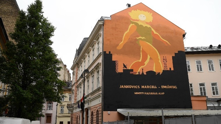 Fehérlófia - Jankovics Marcellnek állít emléket az NKA székházának tűzfalfestménye