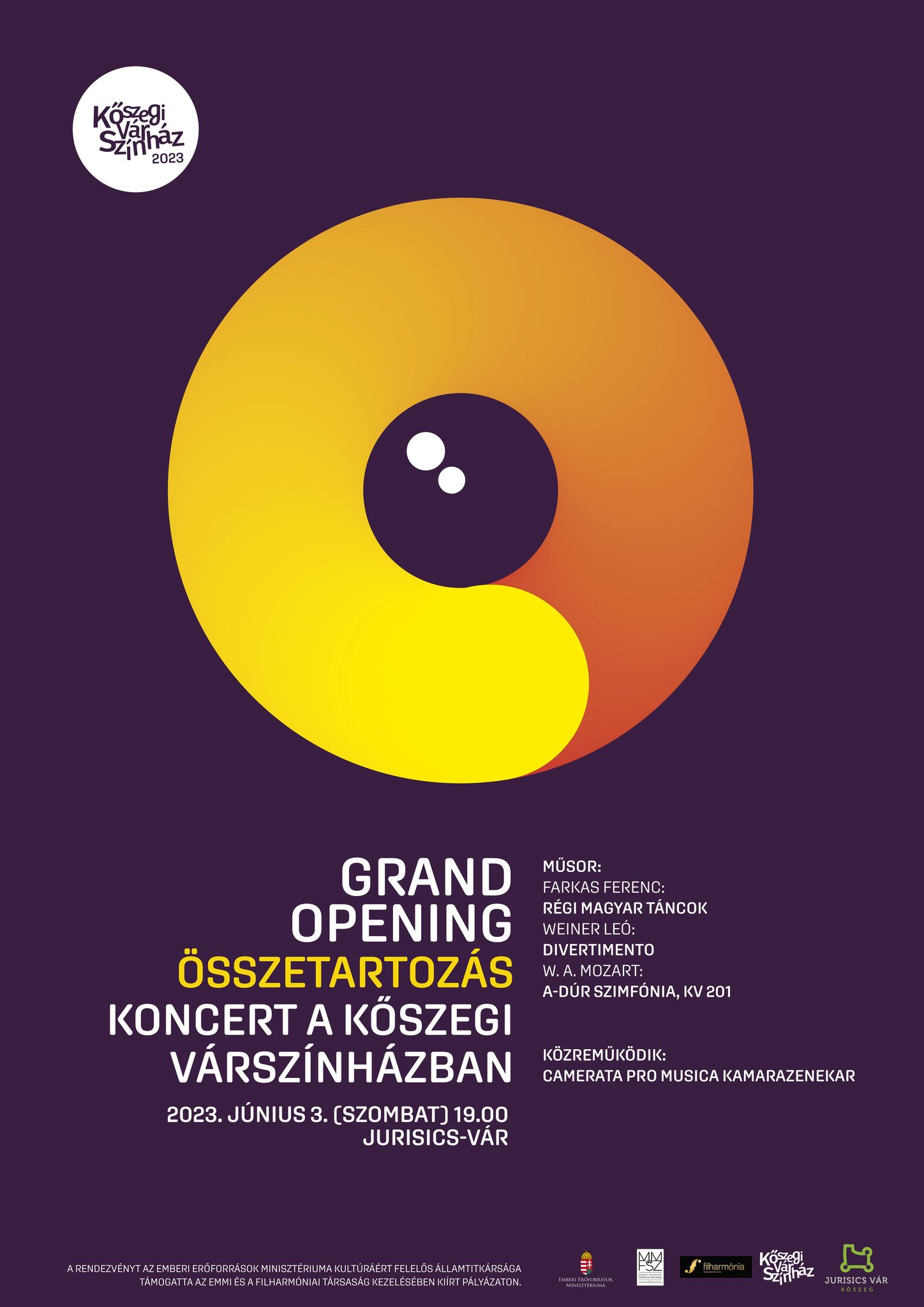 Június 3-án a kőszegi Jurisics-vár színpadán lép fel a Camerata Pro Musica kamarazenekar. A vonós kamarazenekar az 1995-1996-os zenei évadban alakult, tagjai mindannyian a Savaria Szimfonikus Zenekar magas szinten képzett muzsikusai. Az együttes modern építésű (nem historikus) hangszereken játszik, ebből fakadóan repertoárjuk széles skálát ölel fel a barokk kor zenéjétől napjaink kortárs muzsikájáig.