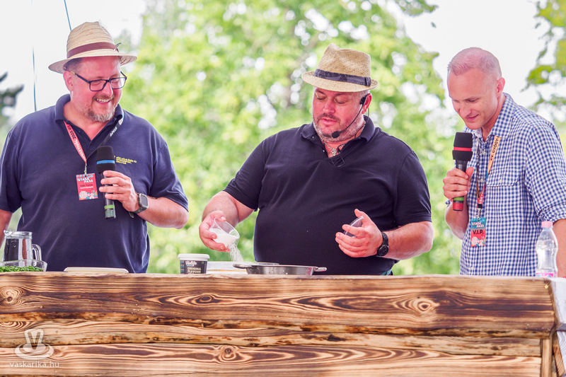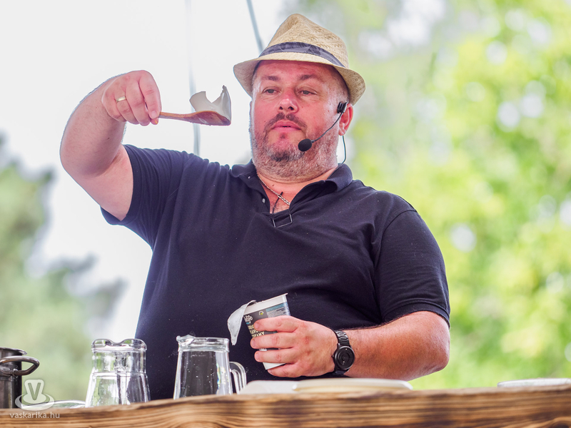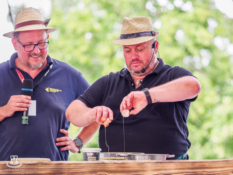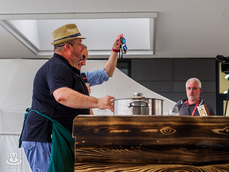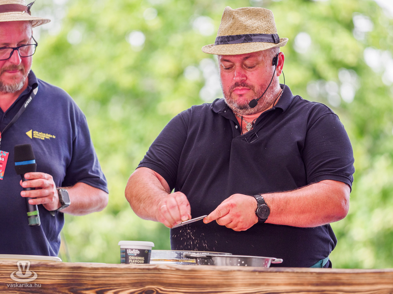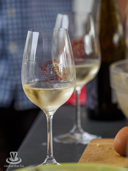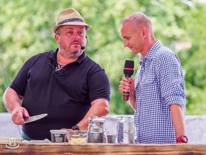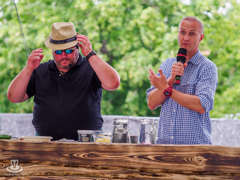 Szögezzük le az elején: minden főzés alapja, hogy igyunk valamit előtte. A séfet, aki ezúttal Nika Róbert volt, itatni és beszéltetni kellett, hogy jó hangulat legyen. Előbbiről a jóféle bor gondoskodott, utóbbiról Szép Bence humorista, aki a főzőkanáltól kellő távolságot tartott, ellenben a szpícset igazi old school stand up-os módjára tolta. Égett is az „anyag" - szerencsére nem le - Robi keze alatt! A szerdai főzés alapanyaga a nyúlhús volt, ami rendkívül egészséges és fesztiváligazgatói kérésre került a gasztrofesztivál kínálatába.