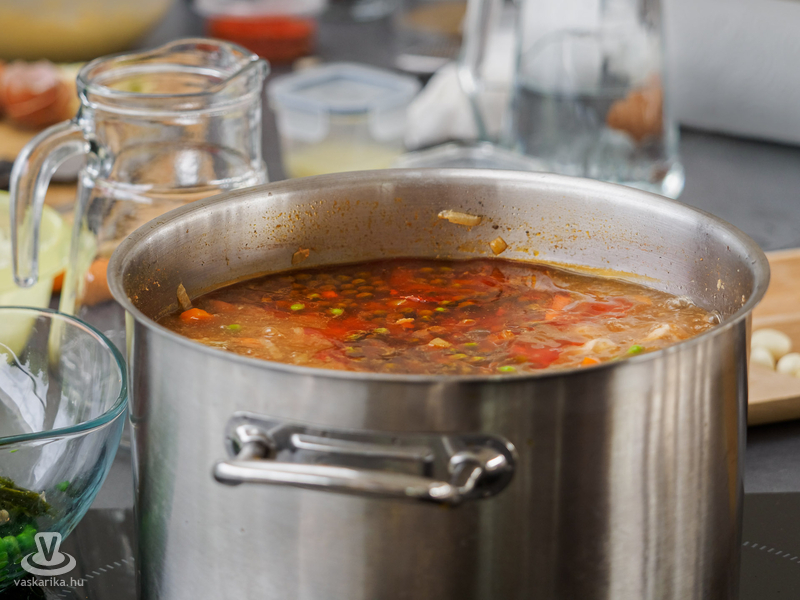 A krumpligombócot külön készítette el, a legfontosabb, hogy sosem új-, hanem öregkrumpliból kell készíteni. Került az étekbe vega krém és kapor is, másfél óra elteltével pedig elkészült - az érdeklődők közt kiosztott nyúlraguleves izgalmas gasztrokísértésnek bizonyult, jelen sorok írója is betolt egy tállal belőle.
