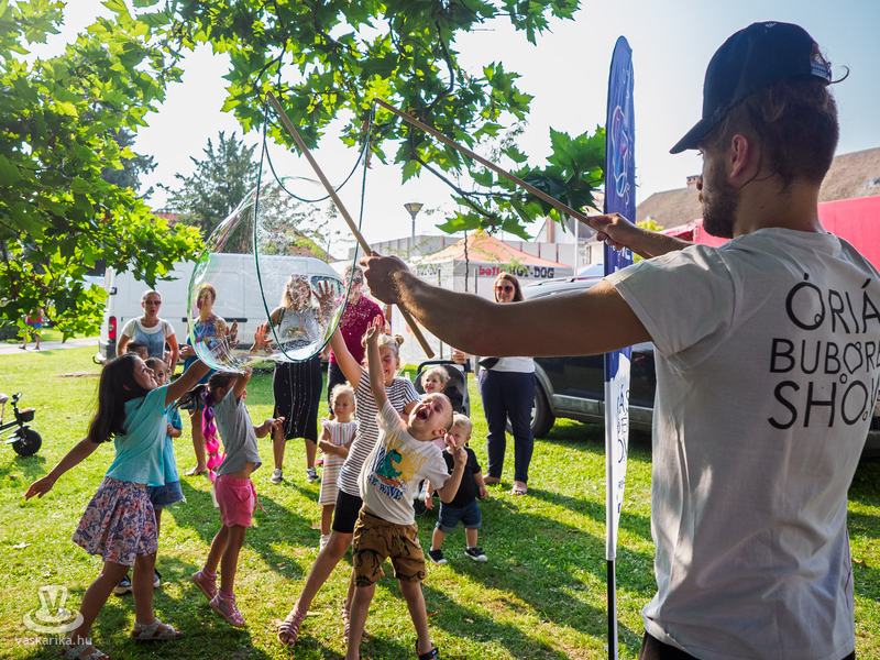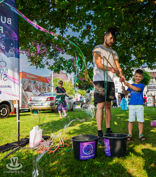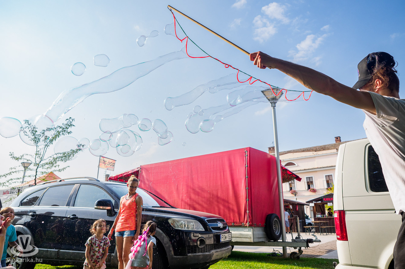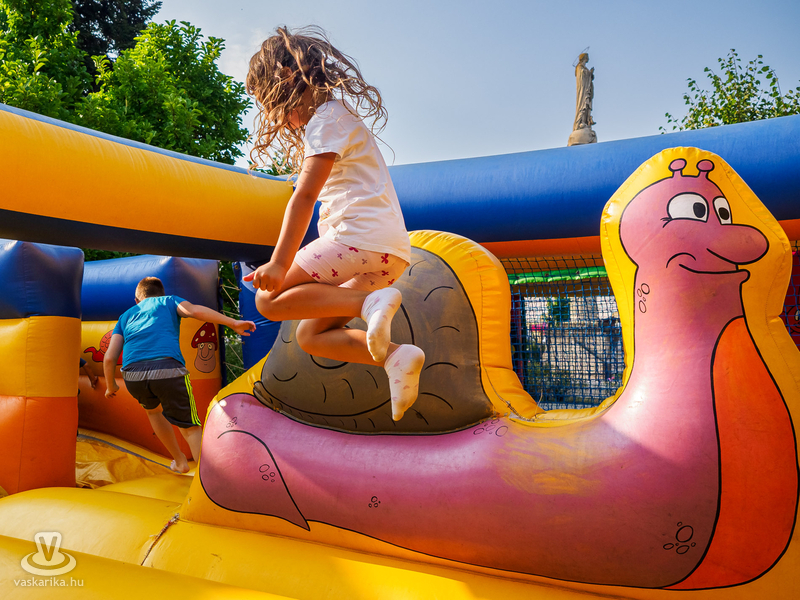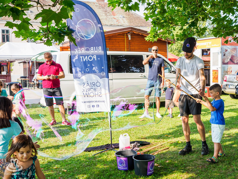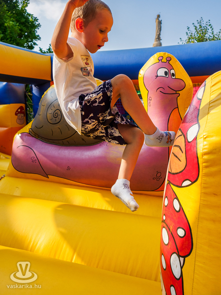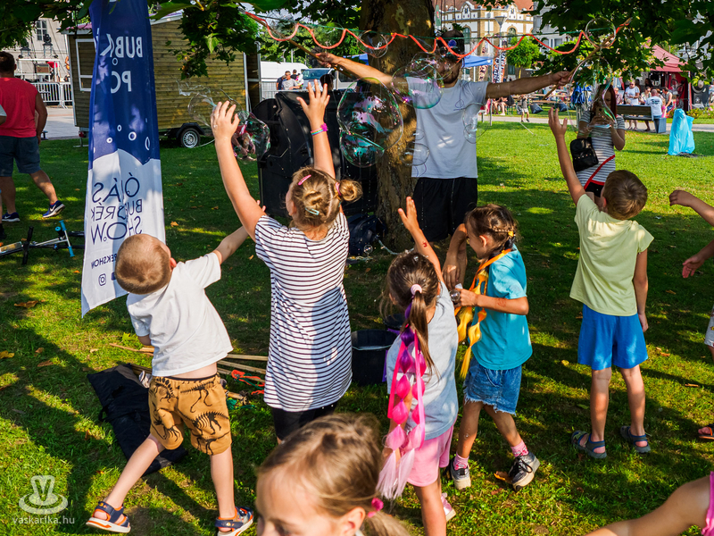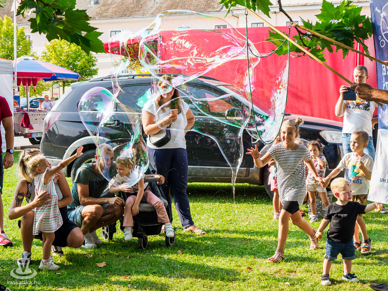 Biztosan a Körmendi Napok legvidámabb szeglete a Szabadság tér gyerekek számára "berendezett" része, ahol többek közt óriásbuborékokat lehetett fújni és durrantani. Utánpótlás kosáredzőknek érdemes lett volna kijönni és felmérni, mekkorát emelkednek a kisklambók egy-egy buborék kidurrantásáért, a harcművészet tudorainak pedig az ugrálóváras figurákon bemutatott "formagyakorlatok" miatt. Kitelepült a büntetés-végrehajtás is, és a gyerkőcök választ kaphattak az "Apu, hogy megy be..." kérdésre. Hát vezetőszáron. A rabomobilba. Szerencsére ki is jött, és hepiend lett a történet vége, ahogy ez a kis zöld sziget is csupa mosoly és vidámság volt augusztus 19-én.