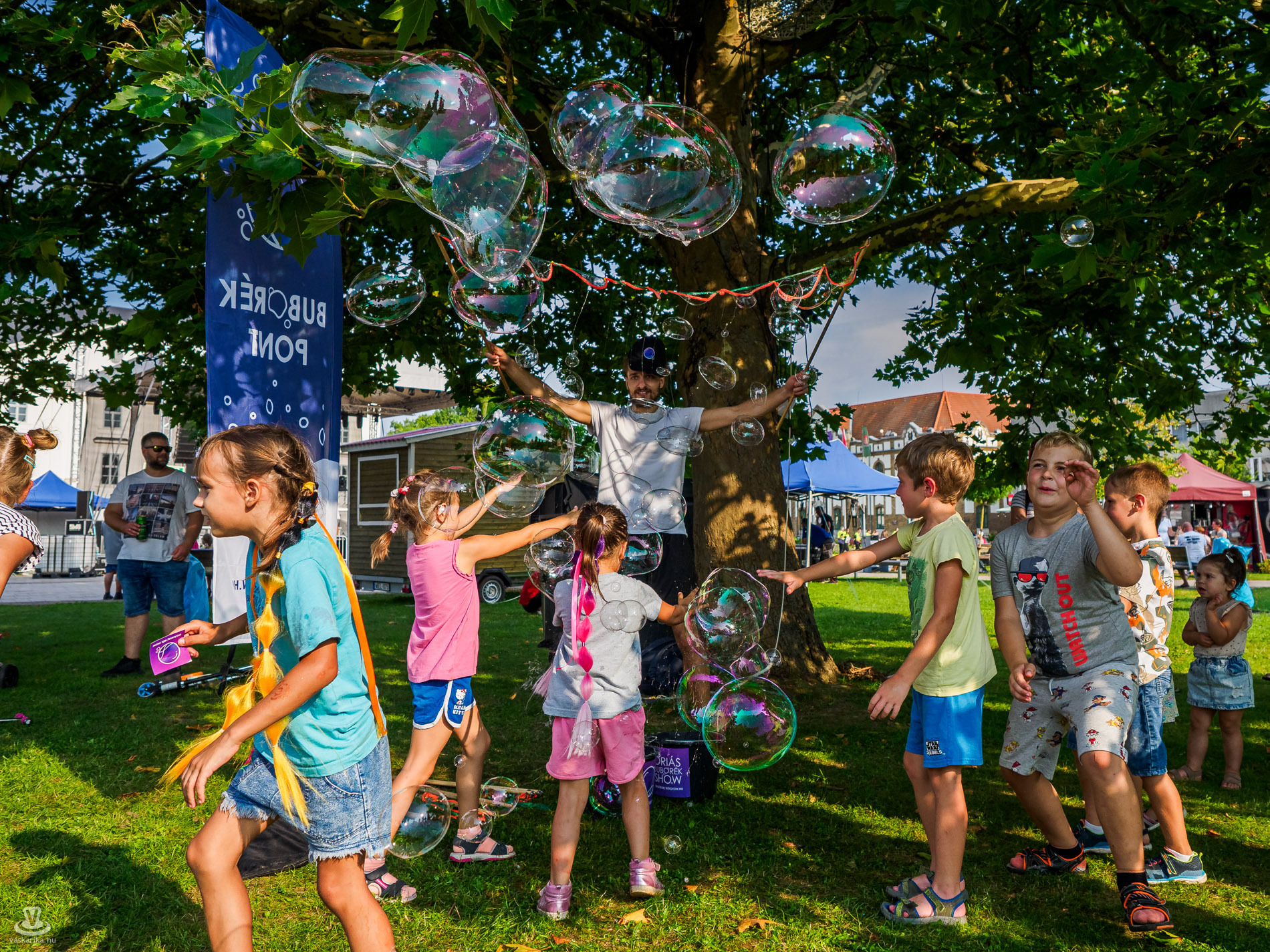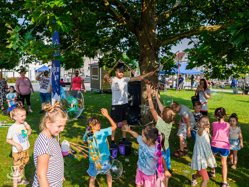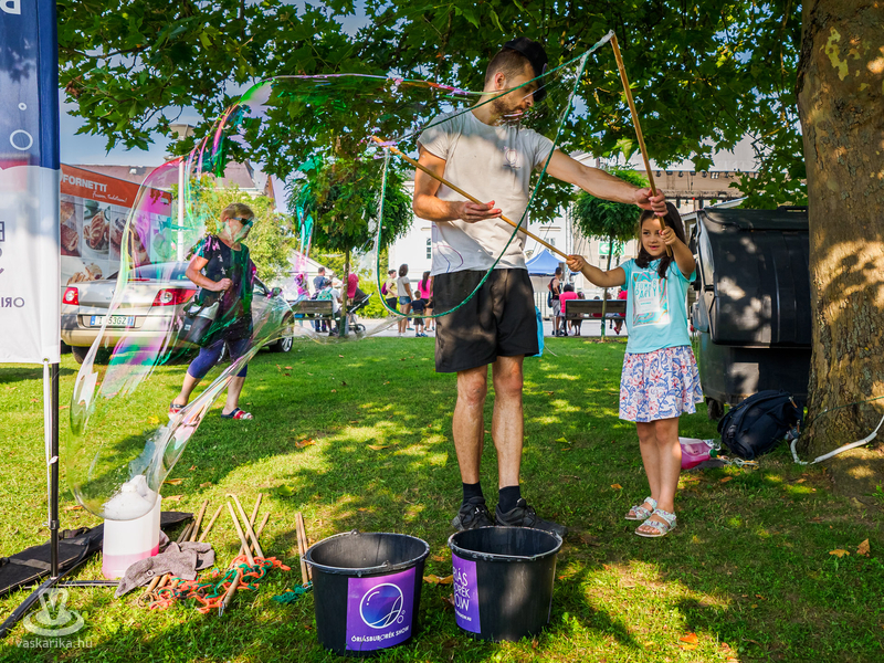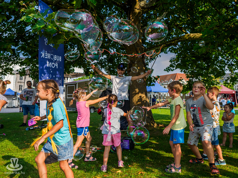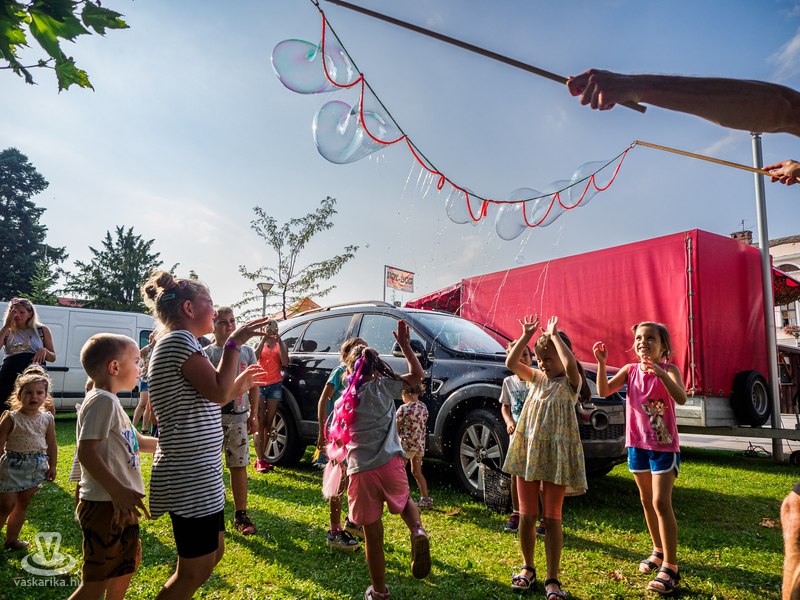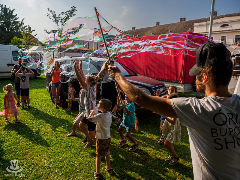 Biztosan a Körmendi Napok legvidámabb szeglete a Szabadság tér gyerekek számára "berendezett" része, ahol többek közt óriásbuborékokat lehetett fújni és durrantani. Utánpótlás kosáredzőknek érdemes lett volna kijönni és felmérni, mekkorát emelkednek a kisklambók egy-egy buborék kidurrantásáért, a harcművészet tudorainak pedig az ugrálóváras figurákon bemutatott "formagyakorlatok" miatt. Kitelepült a büntetés-végrehajtás is, és a gyerkőcök választ kaphattak az "Apu, hogy megy be..." kérdésre. Hát vezetőszáron. A rabomobilba. Szerencsére ki is jött, és hepiend lett a történet vége, ahogy ez a kis zöld sziget is csupa mosoly és vidámság volt augusztus 19-én.