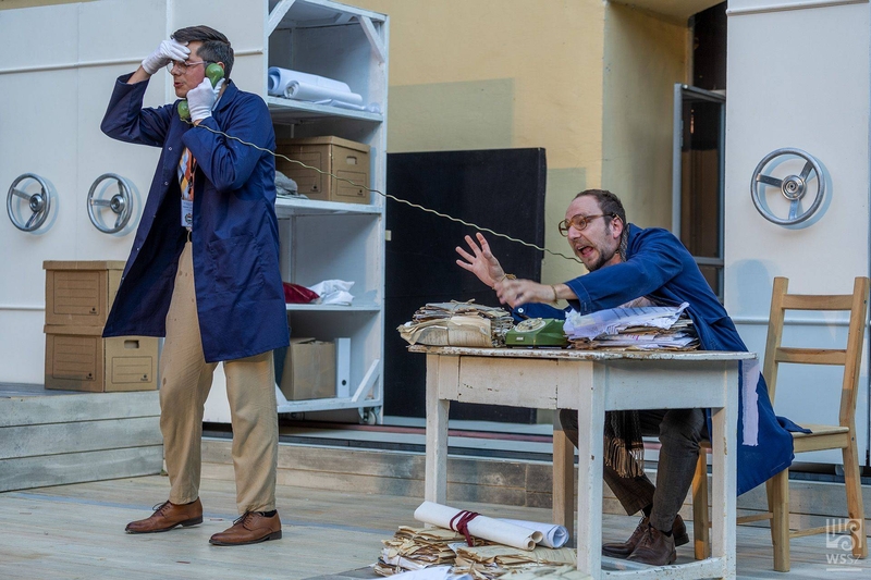 Nagy sikert arat Fábián Péter Asszonyfarsang című komédiája a Savaria Karneválon, akkora az érdeklődés, hogy még egy nulladik sort is be kellett állítani a nézőtéren. A Weöres Sándor Színház idei karneváli előadása mi másról is szólhatna, mint a karneválról. A történet 1965-ben kezdődik, árvíz pusztít a városban, elönti többek között a levéltárat is. Ferusz György levéltáros (Sipos László Márk) elkeseredetten veszi fel a harcot Jakab bácsi, a portás (Domokos Zsolt) segítségével a mindent elnyelni akaró víz ellen. Ferusz György segítségért telefonál, nem kerülhet ebek harmincadjára, pontosabban a víz martalékává a megannyi értékes okirat. Végül a felmentő sereg helyett a víziszonyos Tóth Gyula bádogos és vízvezetékszerelő (Orosz Róbert) érkezik meg. Talán lenne is esélyük az árvízzel foglalkozni, ha nem jönne Kukik elvtárs, párttitkár (Kelemen Zoltán) azzal az utasítással, hogy Ferusz Györgynek egy karneváli darabot kell betanítania a Kukik által hozott gyári dolgozókból álló csapatnak (Nagy-Bakonyi Boglárka, Nagy Cili, Herman Flóra, Balogh János, Hajdu Péter István, Keller Dániel, Szabó Róbert Endre, Keller-Dénes Emőke), hogy a karneválon bemutassák. Sem Ferusz Györgynek, sem a munkásoknak nincs ínyükre a dolog, ám közben kiderül, hogy Jakab bácsi egyben Ízisz-pap is, és az árvíz Ízisz bosszúja, amit megszüntetni csakis a kiengesztelésével lehet, ami nem más, mint a felvonuláson James Joyce Asszonyfarsang című darabjának előadása a másik helyett, amit Kukik elvtárs javasolt. Kukik elvtárs darabja eleve férfiakkal van tele, Dózsa Györgyről, a Tanácsköztársaságról szól, de hol vannak az asszonyok? Őt is szót kérnek maguknak. Amit nem találtak meg Kukik hivatalos karneváli darabjában, megtalálják Joyce Asszonyfarsangjában.