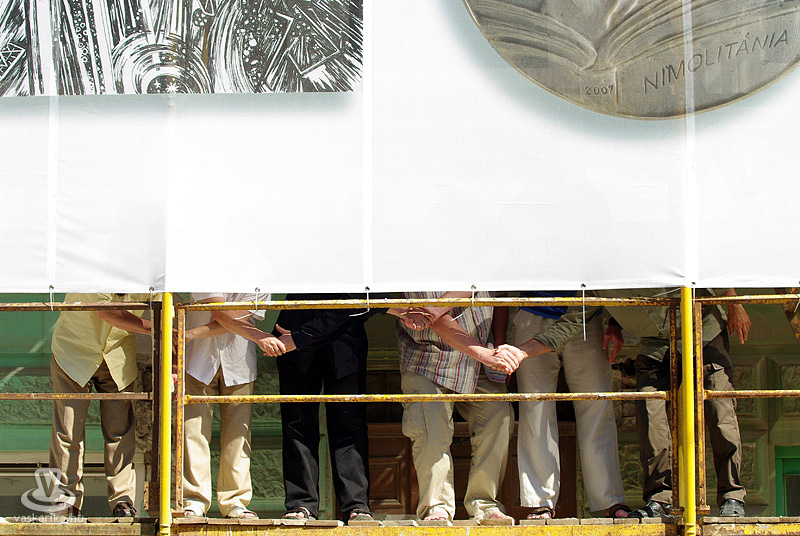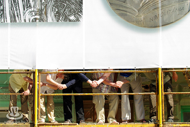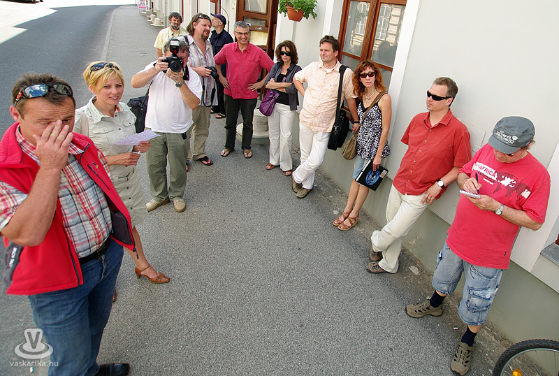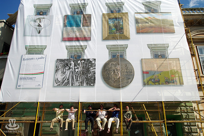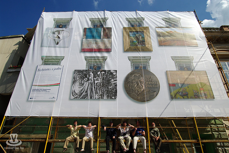 A Kossuth Lajos utca járdáján avatódott fel a Savaria Tendency Art Group kulturális egyesület által életre hívott kiállítás, amely mint megtudtuk, szervesen kapcsolódik a pályázati segítséggel végbemenő belvárosi rekonstrukcióhoz. A nem mindennapi helyszín az akkor is munkafolyamatok alatt álló, a városháza melletti Kossuth Lajos utca 7 szám alatti többszintes épület homlokzatának álványzata – mint kiállítási felület -, illetve a gyógyszertár előtti járda – mint fogadótér – voltak.