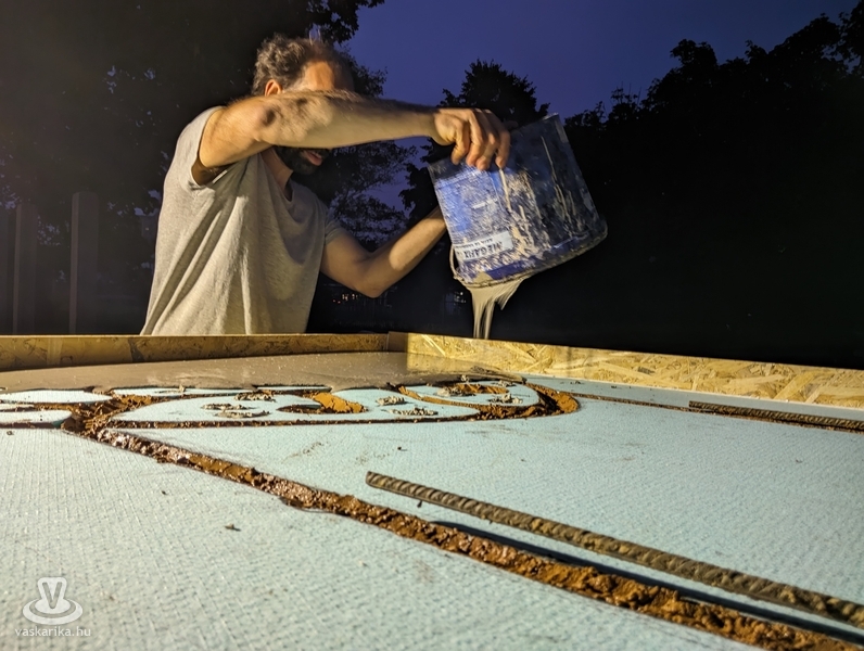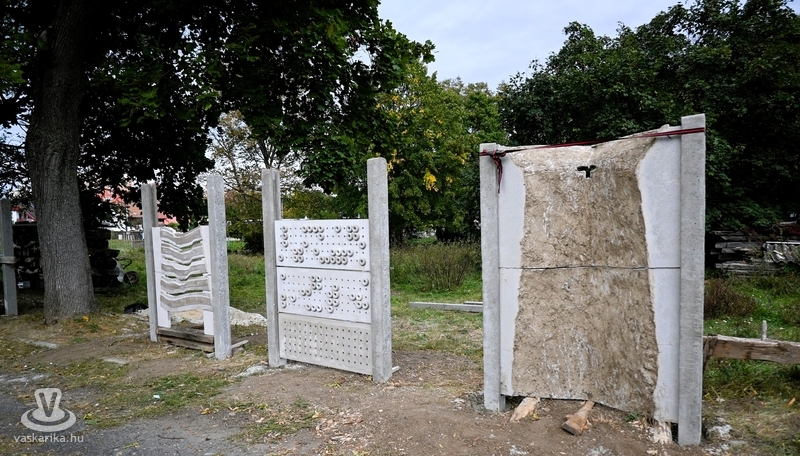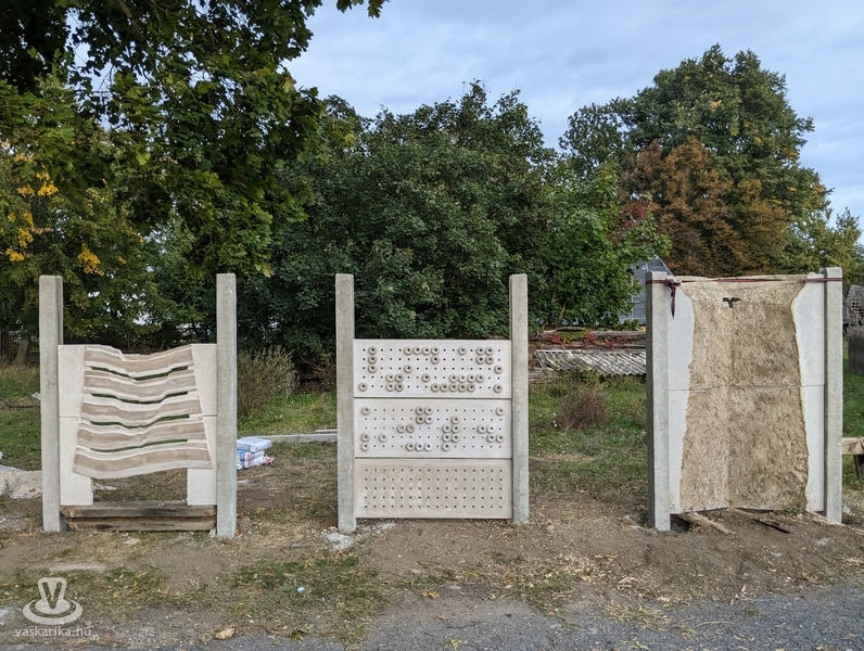 A felső elem pedig megidézi a korábbi beton kerítések gyakorlatát, miszerint a készítők a legelemibb technikákat és anyagokat használták fel a díszítéséhez vagy a beton zsalu, kaloda elkészítéshez.