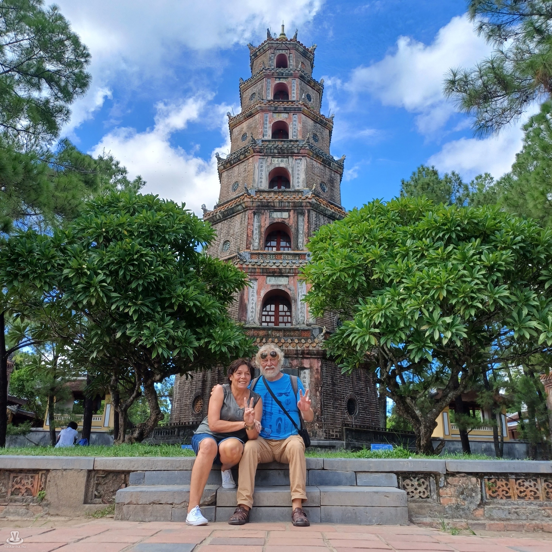Az 1600-as években épült buddhista pagoda, a Thien Mu következett a sorban aranyozott szentélyével, és kertjében különleges gyönyörű díszfáival, amelyek éppen akkor virágoztak.