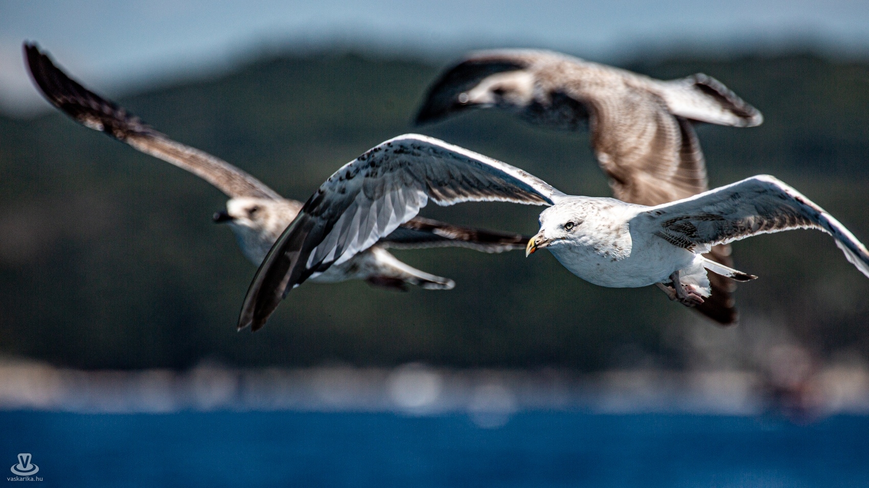A sirályokhoz pont úgy vonzódom mint a varjakhoz. Sokan nem szeretik, rondának tartják őket, és hangjuk miatt sem népszerűek. Szerintem viszont mindkét madárnál csodálatra méltó az intelligencia, az összefogás és az élni akarás, ami bennük rejlik. Ő itt az Adria kalóza (két matrózzal), ahogy éppen a hajónk farvizén halászik. Elszánt tekintete tükrözi a tenger minden vadságát.
