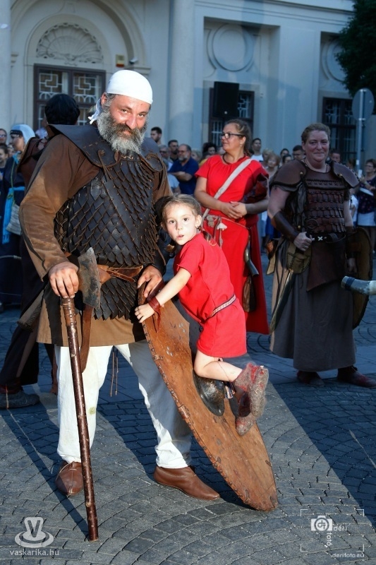 A Pajzsra fel! c. felvétel ugyancsak a XXII. Savaria Történelmi Karneválon forgatagában készült. Hosszú és kimerítő nap után az esti felvonulás közben, a Püspöki Palota előtt megpihenő apa vagy nagyapa és gyermeke ihletett meg. A hagyományaink megőrzése, a családi kötődés fontossága, az apai vagy nagyapai támasz a kisgyermek számára, az együtt eltöltött minőségi idő - mindaz, amit-e felvétel tükrözni szeretne.