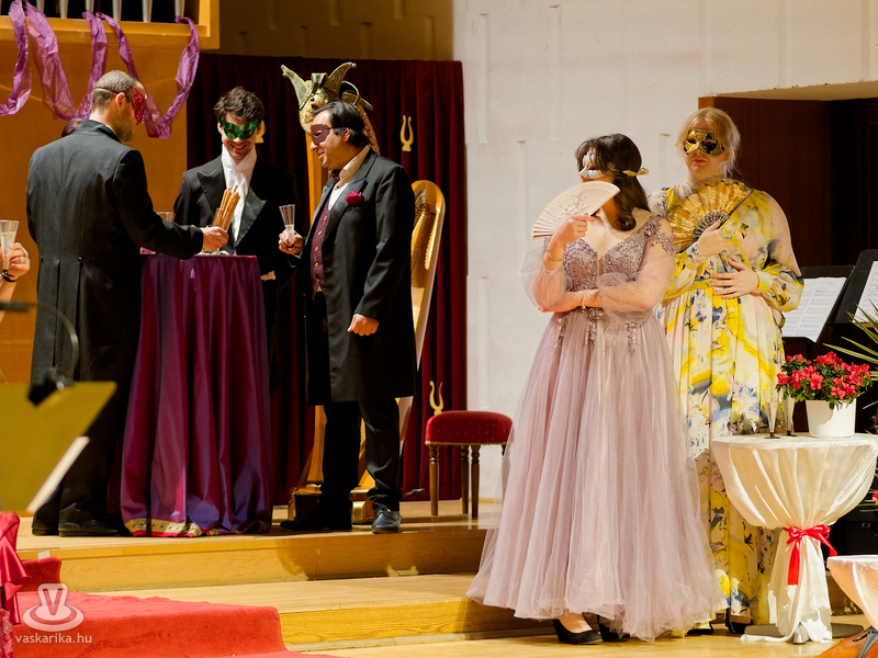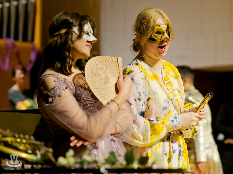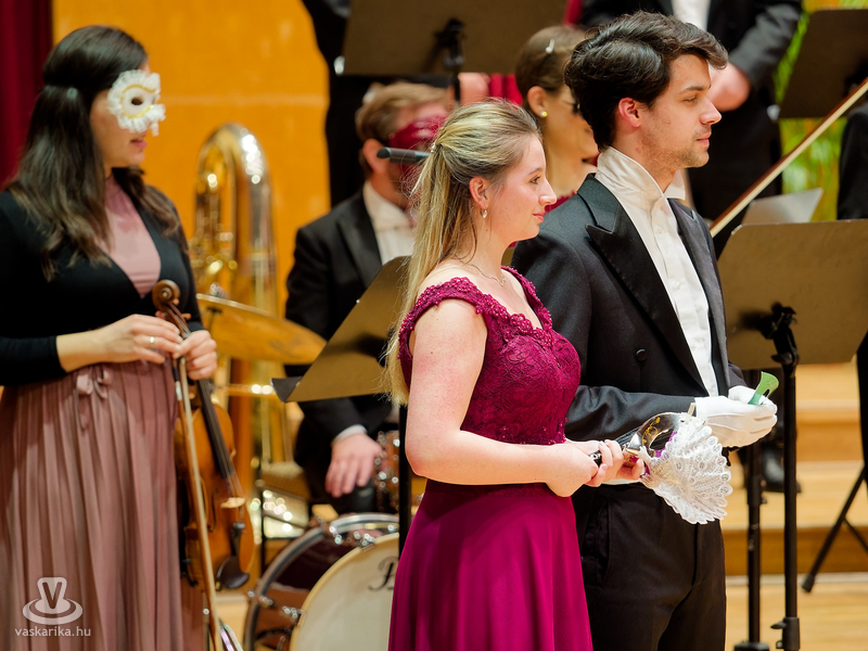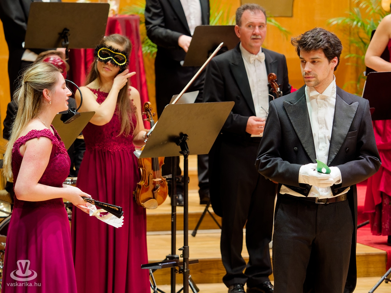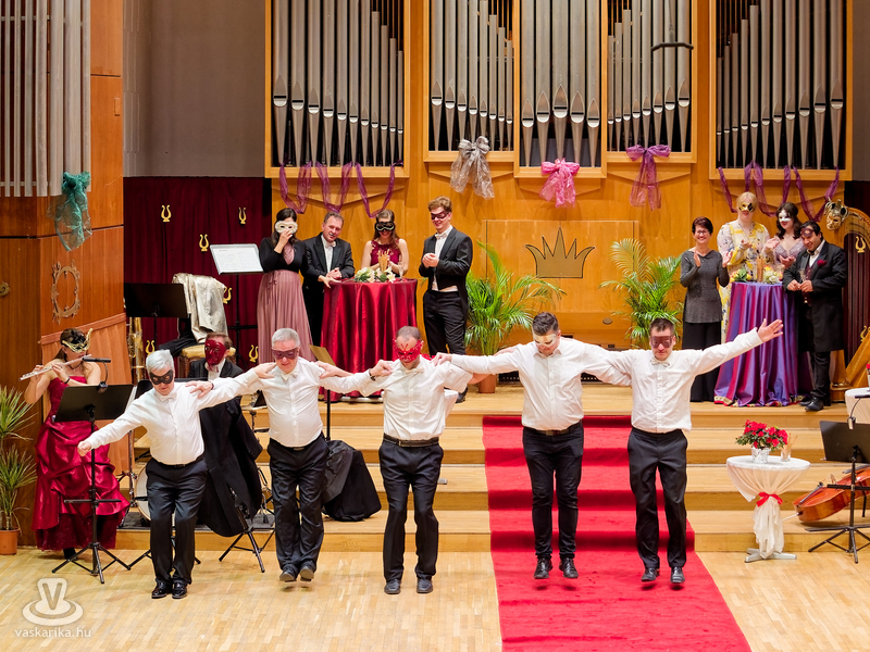 "Ha nem tudjuk, kit rejt az álarc, sokkal érdekesebb a játék!" - a velencei karnevál hangulatát varázsolta a Bartók Terembe a Savaria Szimfonikus Zenekar! A Zenemanók sorozat legújabb darabja az operett fénykorában játszódott egy vidéki kastélyban, a történetbe pedig a vérpezsdítő muzsikák mellett szerelmi szál is szövődött - Valentin-napi aktualitásként. S hogy a gyerekek se maradjanak ki a szereplésből, a rezes szekció színpadra hívott jó pár gyerkőcöt egy kis szirtakira.