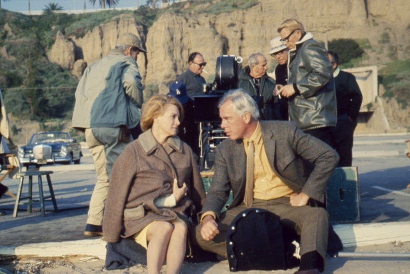 A képen Lee Marvin filmforgatáson Angie Dickinsonnal 1967-ben. Fotó: Photo12 via AFP